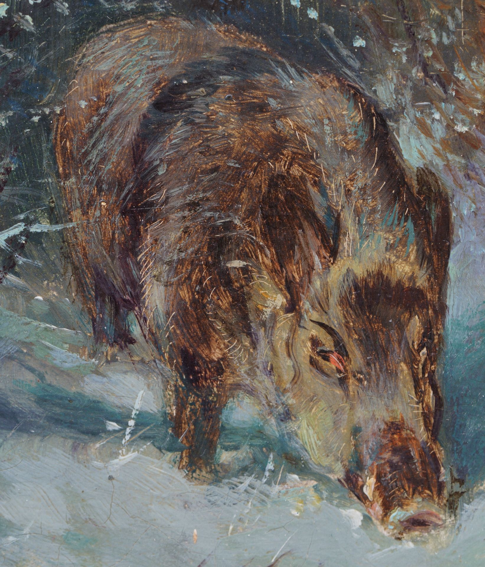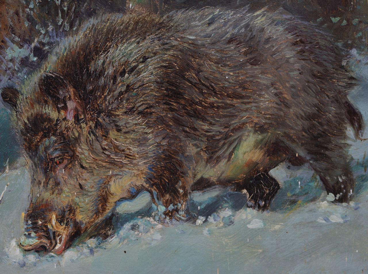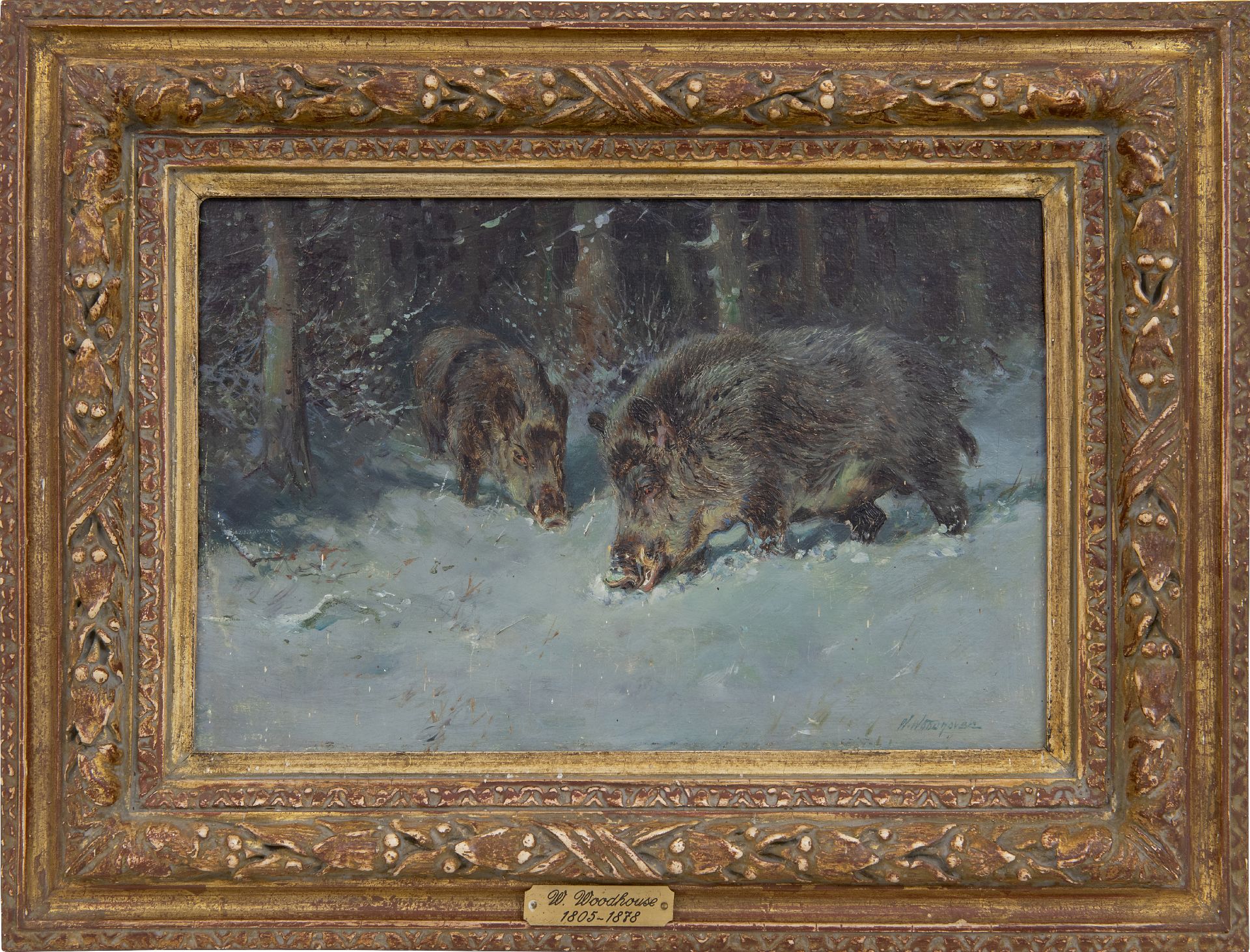 William Woodhouse kunstwerk • schilderij • te koop Twee wilde zwijnen in de sneeuw