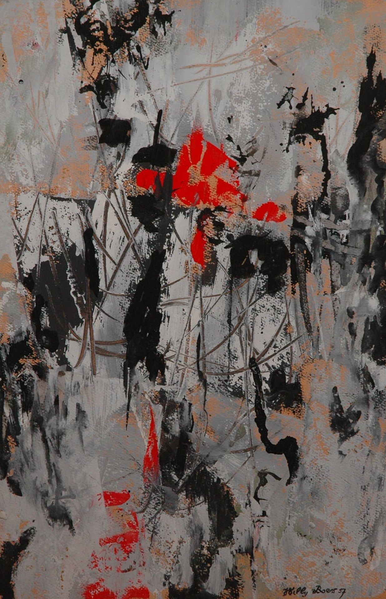 De Amsterdamse schilder Willy Boers was een van de sleutelfiguren in de vernieuwing van de beeldende kunst in Nederland na de Tweede Wereldoorlog. In 1946 was hij mede-oprichter van de Amsterdamse groep Vrij Beelden, waartoe o.a. Hussem, Roëde en Ouburg behoorden die regelmatig exposeerden in het Stedelijk Museum in Amsterdam. De schilders van Vrij Beelden kozen voor experiment en abstractie, waarbij zij vrij voortbouwden op bestaande stromingen als kubisme, surrealisme en expressionisme. Dit in tegenstelling tot Cobra, dat geheel brak met de bestaande beeldtaal. Het werk van Boers na 1945 was volledig abstract met duidelijke invloeden van Kandinsky. In 1950 richtte hij met o.a. Rooskens en Brands de groep Creatie op, waarin experiment en abstractie ook weer een rol speelden. Naast rasschilder was hij ook een begaafd auteur die een groot aantal verhelderende stukken over abstracte kunst schreef.
