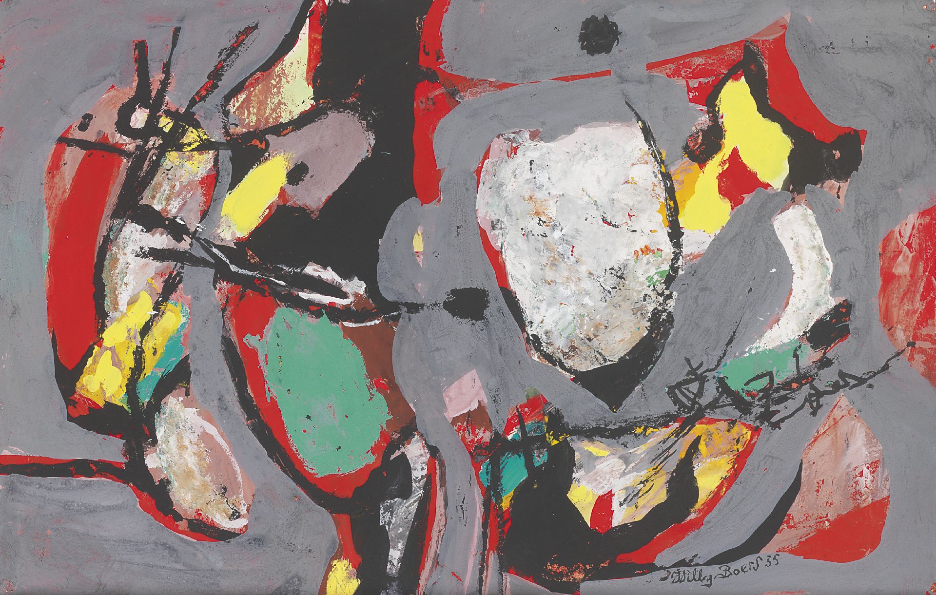 De Amsterdamse schilder Willy Boers was een van de sleutelfiguren in de vernieuwing van de beeldende kunst in Nederland na de Tweede Wereldoorlog. In 1946 was hij mede-oprichter van de Amsterdamse groep Vrij Beelden, waartoe o.a. Hussem, Roëde en Ouburg behoorden die regelmatig exposeerden in het Stedelijk Museum in Amsterdam. De schilders van Vrij Beelden kozen voor experiment en abstractie, waarbij zij vrij voortbouwden op bestaande stromingen als kubisme, surrealisme en expressionisme. Dit in tegenstelling tot Cobra, dat geheel brak met de bestaande beeldtaal. Het werk van Boers na 1945 was volledig abstract met duidelijke invloeden van Kandinsky. In 1950 richtte hij met o.a. Rooskens en Brands de groep Creatie op, waarin experiment en abstractie ook weer een rol speelden. Naast rasschilder was hij ook een begaafd auteur die een groot aantal verhelderende stukken over abstracte kunst schreef.