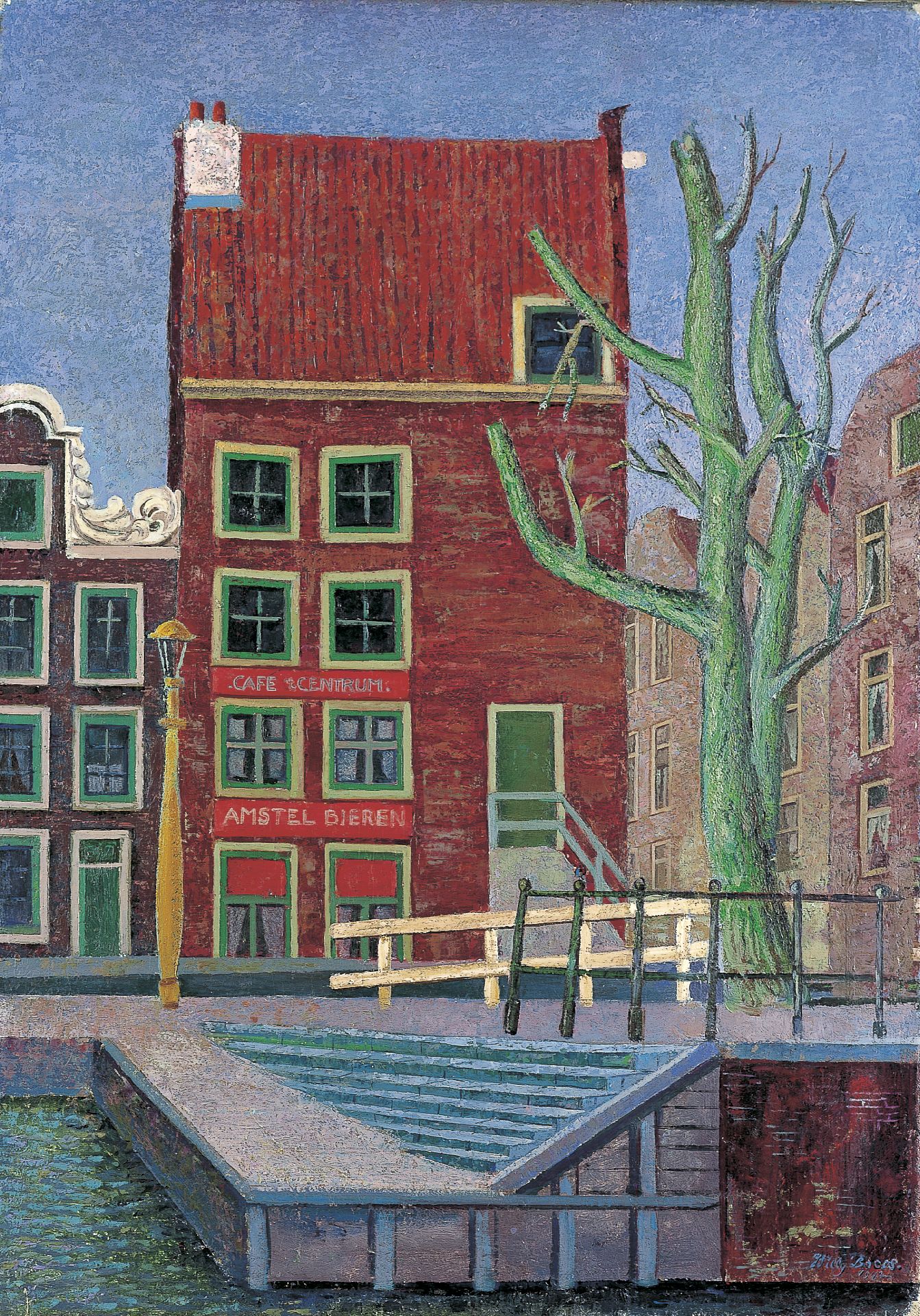 Willy Boers kunstwerk • schilderij • voorheen te koop Rood huis aan gracht