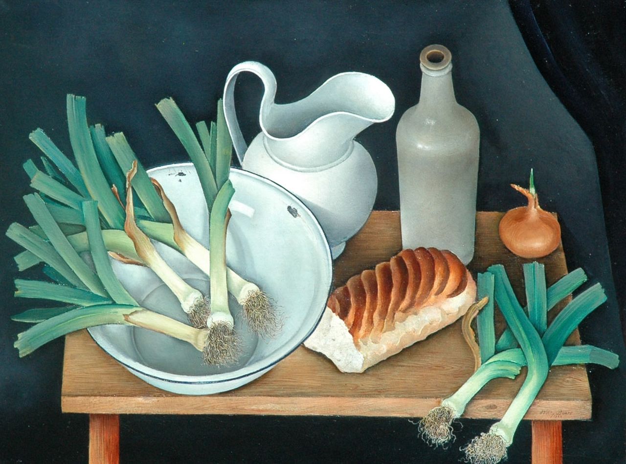 Willy Boers kunstwerk • schilderij • voorheen te koop Stilleven met prei