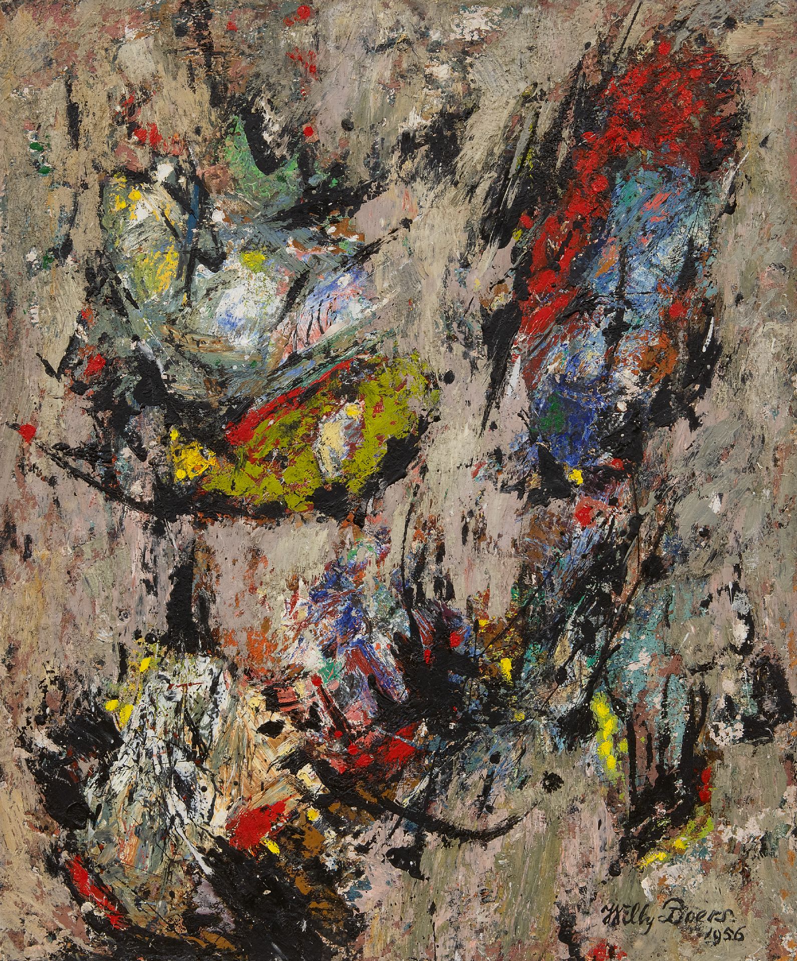 De Amsterdamse schilder Willy Boers was een van de sleutelfiguren in de vernieuwing van de beeldende kunst in Nederland na de Tweede Wereldoorlog. In 1946 was hij mede-oprichter van de Amsterdamse groep Vrij Beelden, waartoe o.a. Hussem, Roëde en Ouburg behoorden die regelmatig exposeerden in het Stedelijk Museum in Amsterdam. De schilders van Vrij Beelden kozen voor experiment en abstractie, waarbij zij vrij voortbouwden op bestaande stromingen als kubisme, surrealisme en expressionisme. Dit in tegenstelling tot Cobra, dat geheel brak met de bestaande beeldtaal. Het werk van Boers na 1945 was volledig abstract met duidelijke invloeden van Kandinsky. In 1950 richtte hij met o.a. Rooskens en Brands de groep Creatie op, waarin experiment en abstractie ook weer een rol speelden. Naast rasschilder was hij ook een begaafd auteur die een groot aantal verhelderende stukken over abstracte kunst schreef.