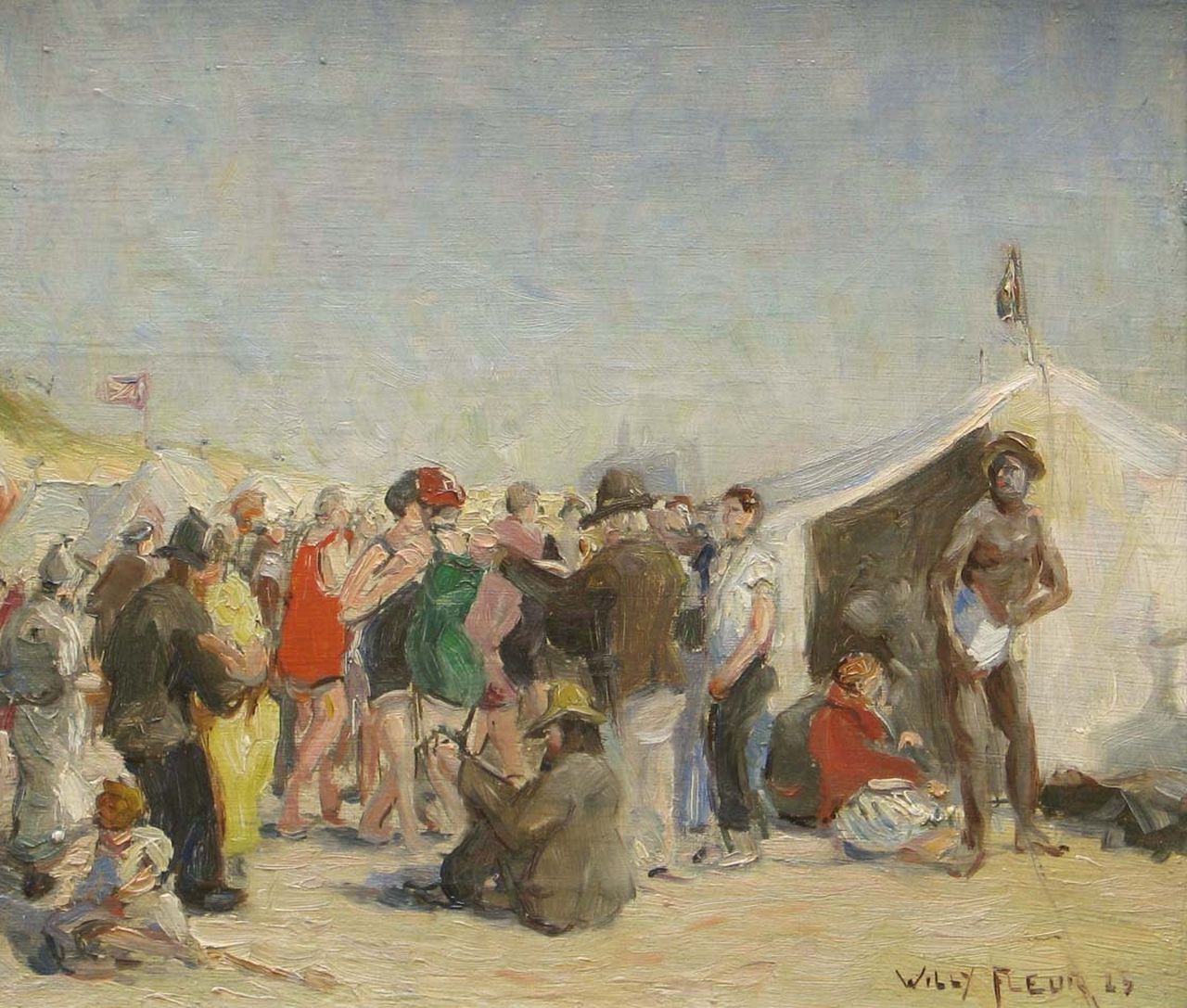 Willy Fleur kunstwerk • schilderij • voorheen te koop Strandfeest