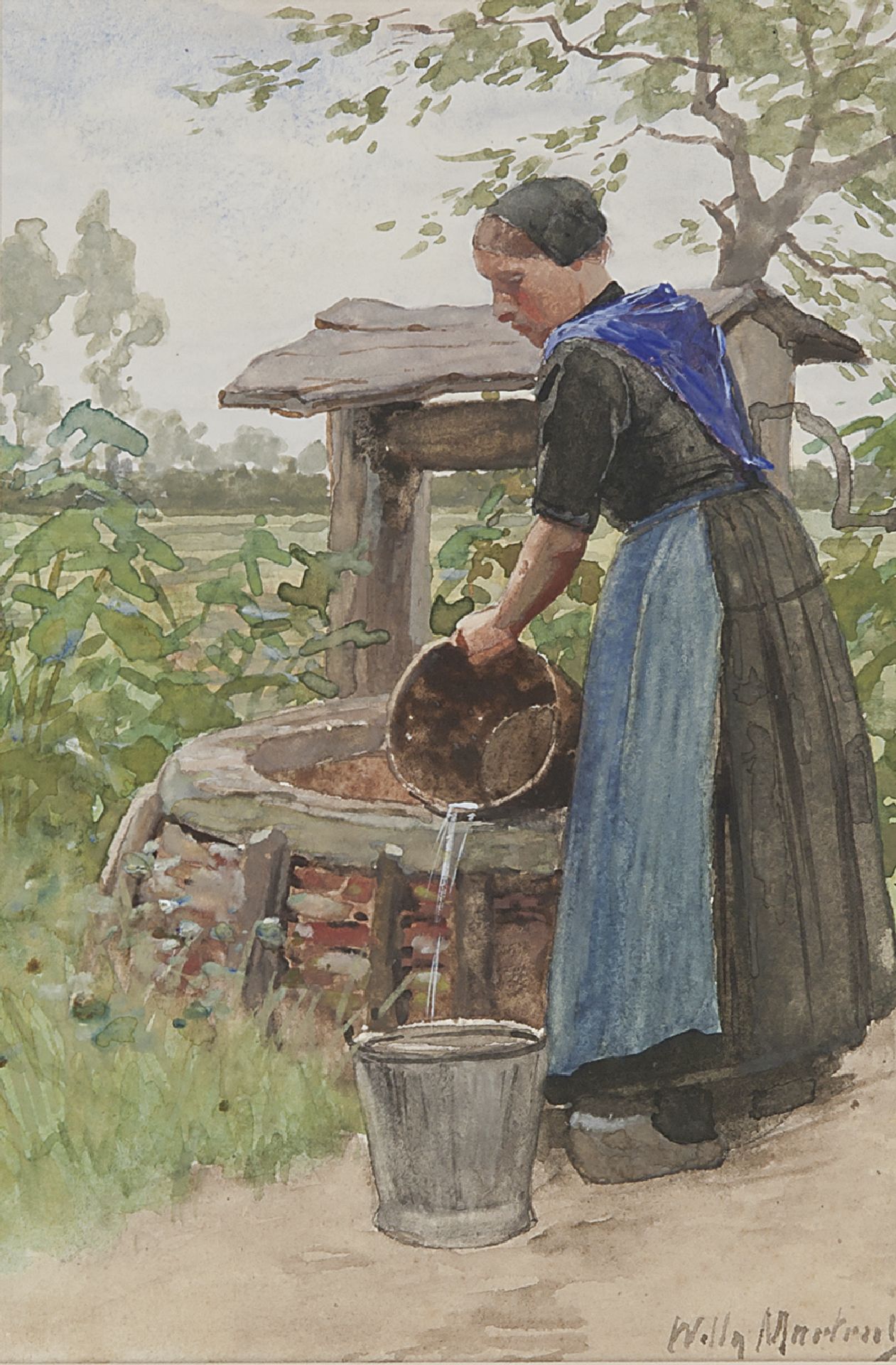 Willy Martens kunstwerk • aquarel • tekening • voorheen te koop Bij de waterput