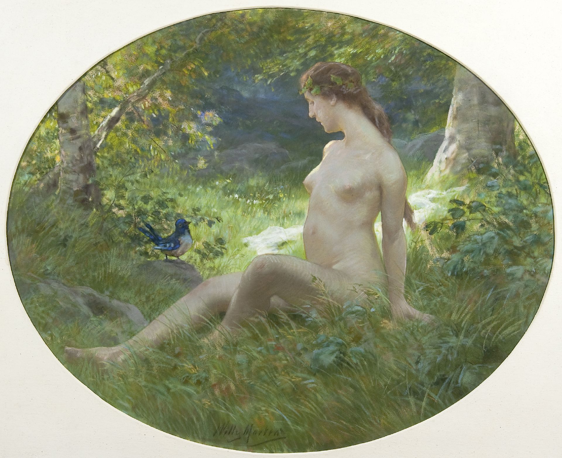 Willy Martens kunstwerk • aquarel • tekening • te koop Zittend naakt