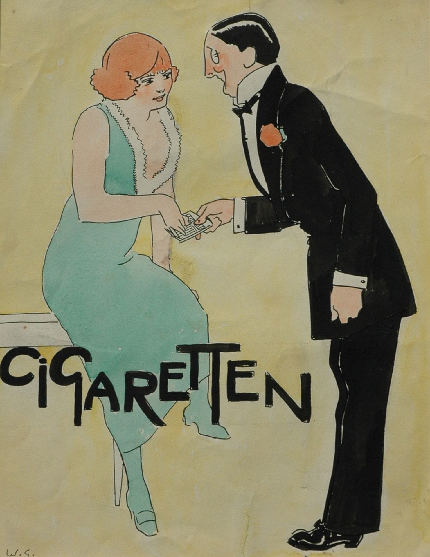 Willy Sluiter kunstwerk • aquarel • tekening • voorheen te koop Cigaretten
