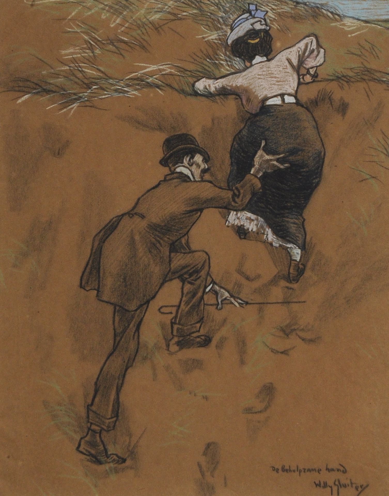 Willy Sluiter kunstwerk • aquarel • tekening • voorheen te koop De behulpzame hand