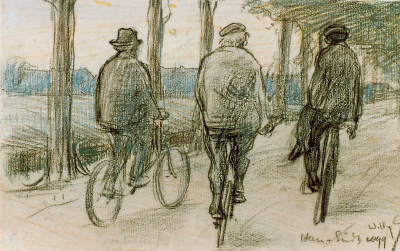 Willy Sluiter kunstwerk • aquarel • tekening • voorheen te koop Drie fietsers