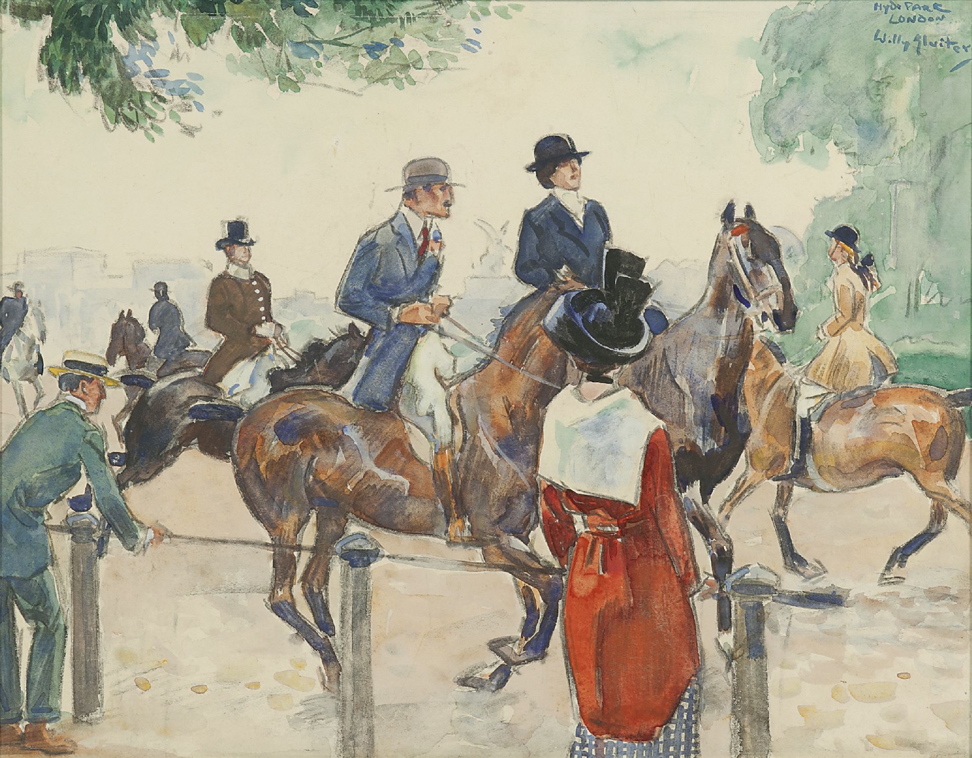 Willy Sluiter kunstwerk • aquarel • tekening • voorheen te koop Hyde Park, Londen