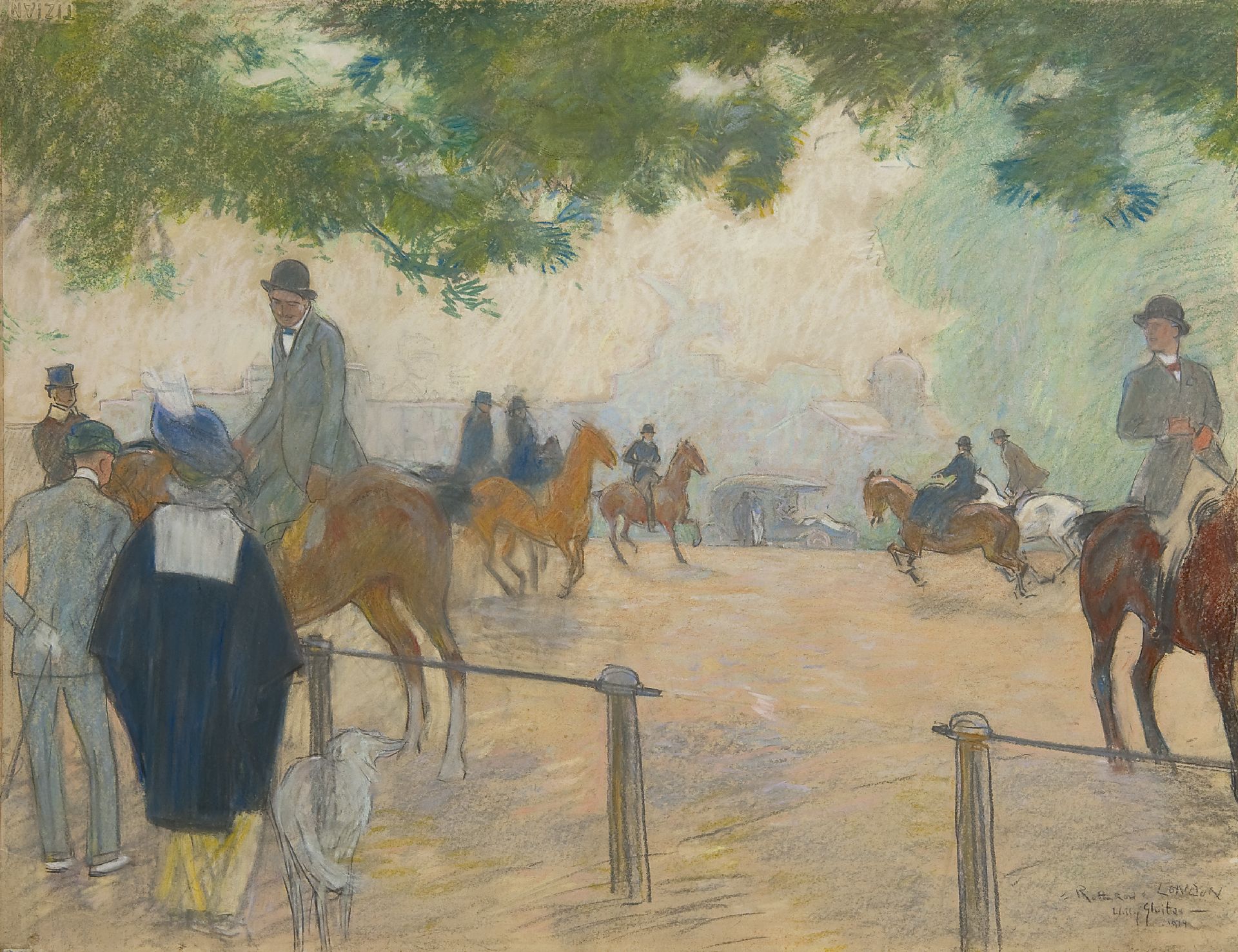 Willy Sluiter kunstwerk • aquarel • tekening • voorheen te koop Rotten Row, Londen