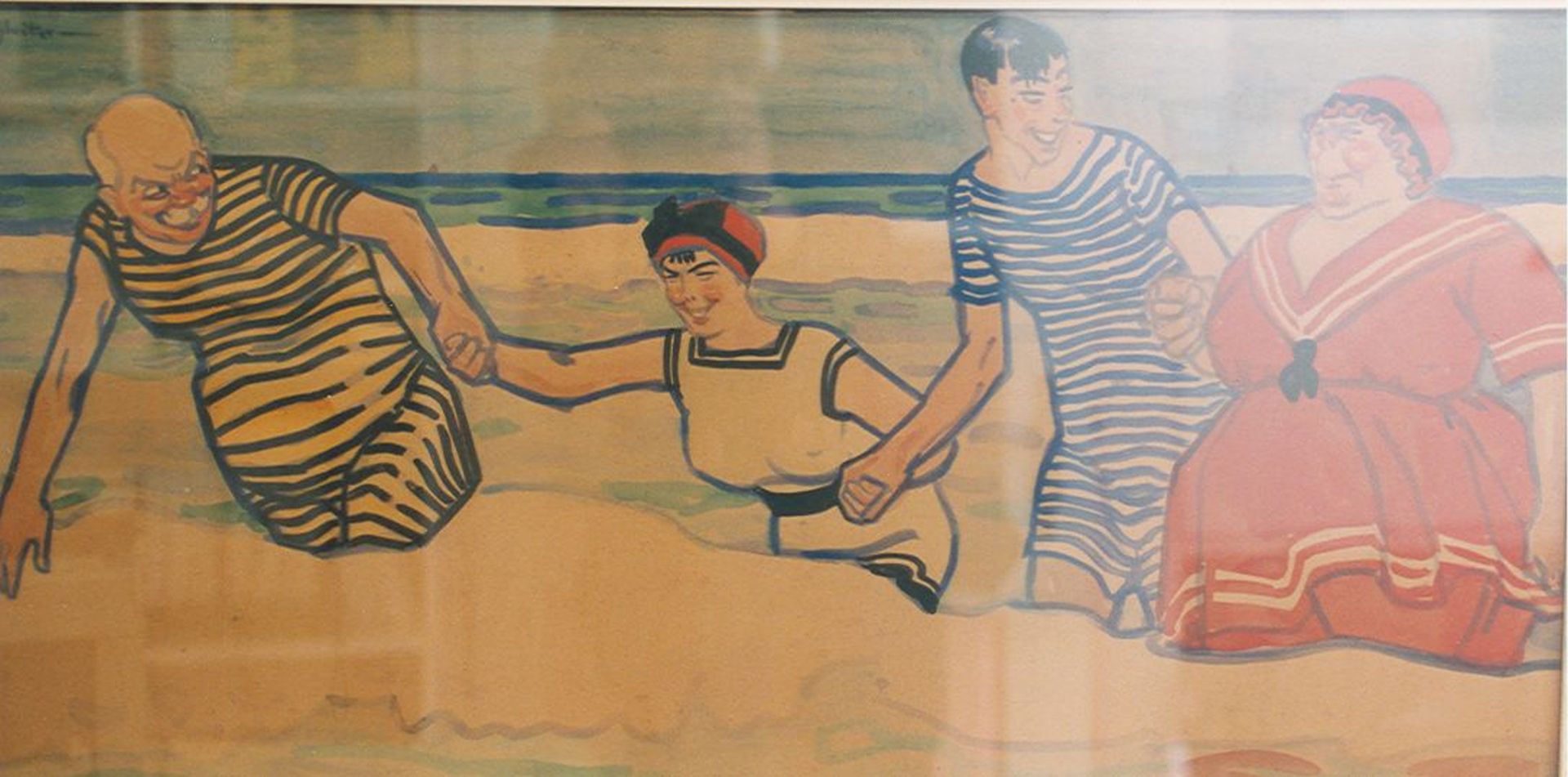 Willy Sluiter kunstwerk • aquarel • tekening • voorheen te koop Samen door de branding