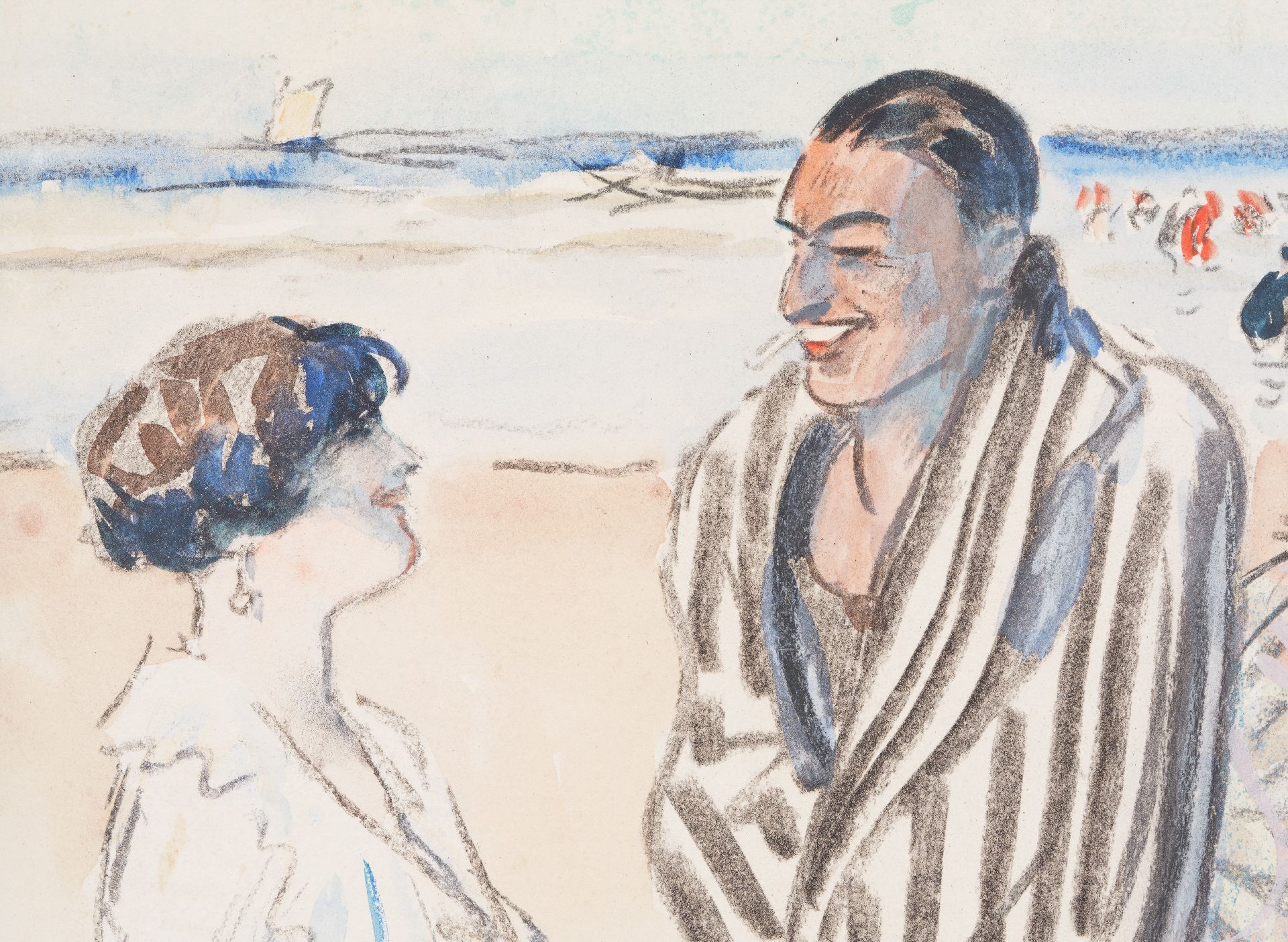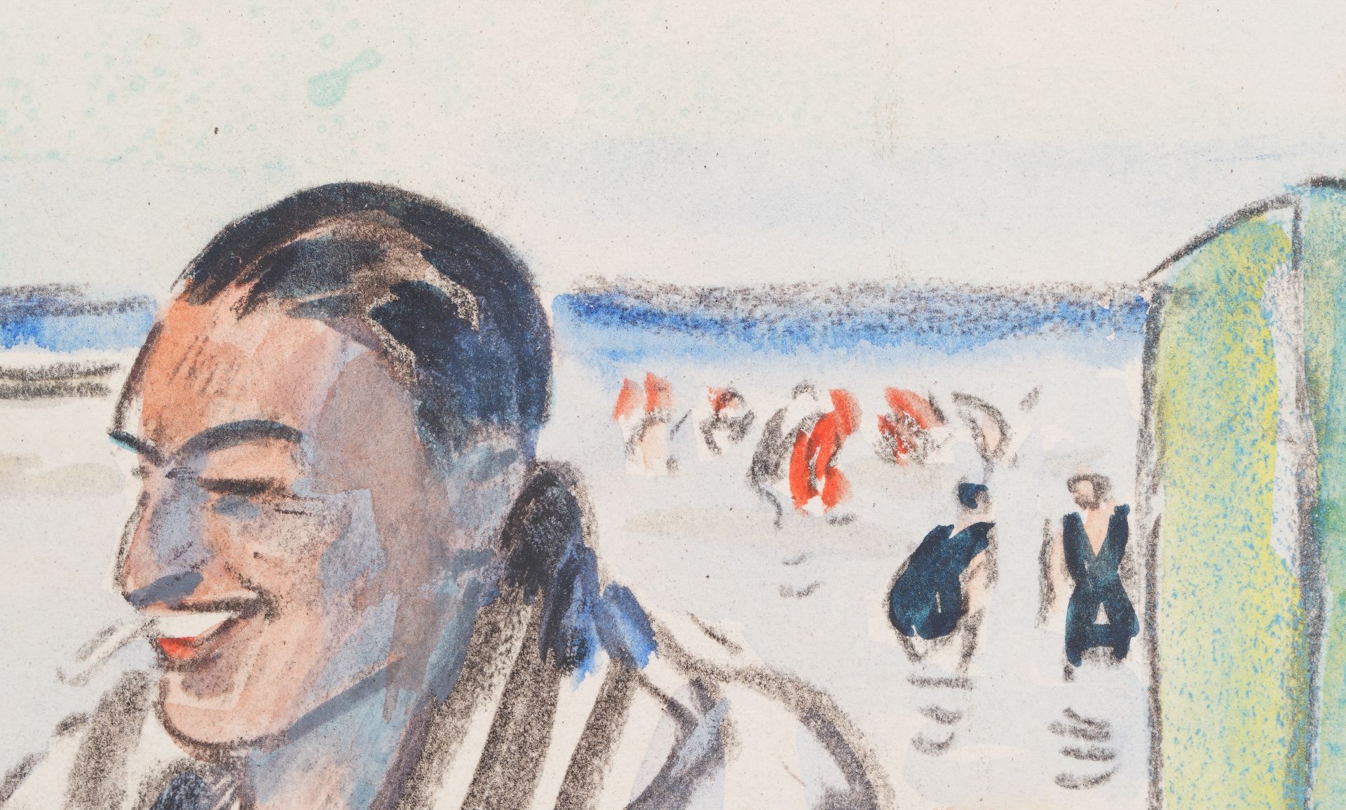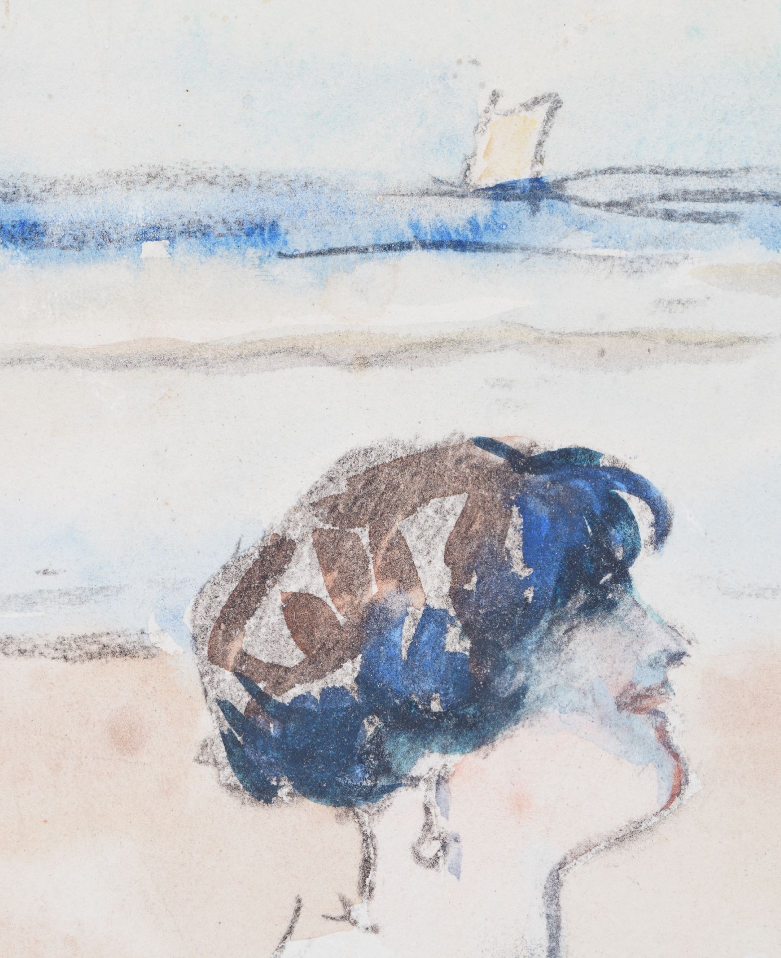 Willy Sluiter | Na de duik in zee, Scheveningen, krijt en aquarel op board, 47,0 x 37,0 cm, gesigneerd l.o.