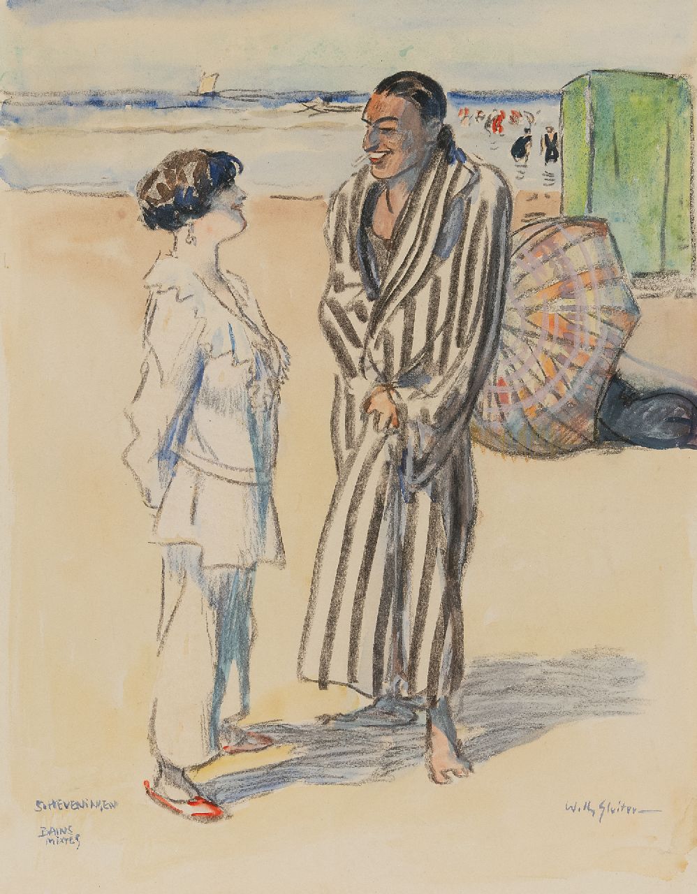 Willy Sluiter kunstwerk • aquarel • tekening • te koop Scheveningen, Bains Mixtes