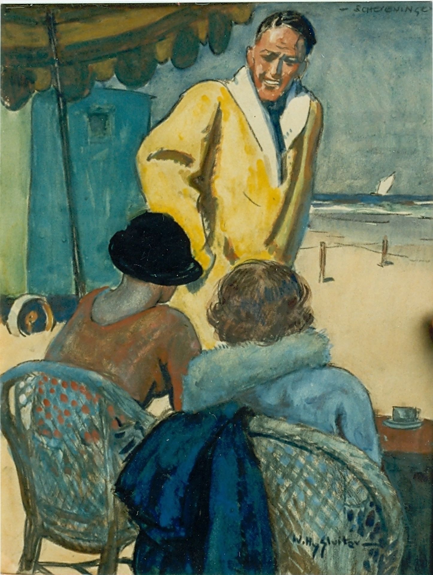 Willy Sluiter kunstwerk • aquarel • tekening • voorheen te koop Scheveningen