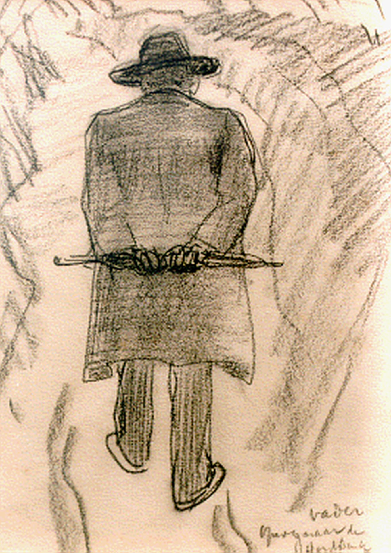 Willy Sluiter kunstwerk • aquarel • tekening • voorheen te koop Vader op weg naar de horstbrink