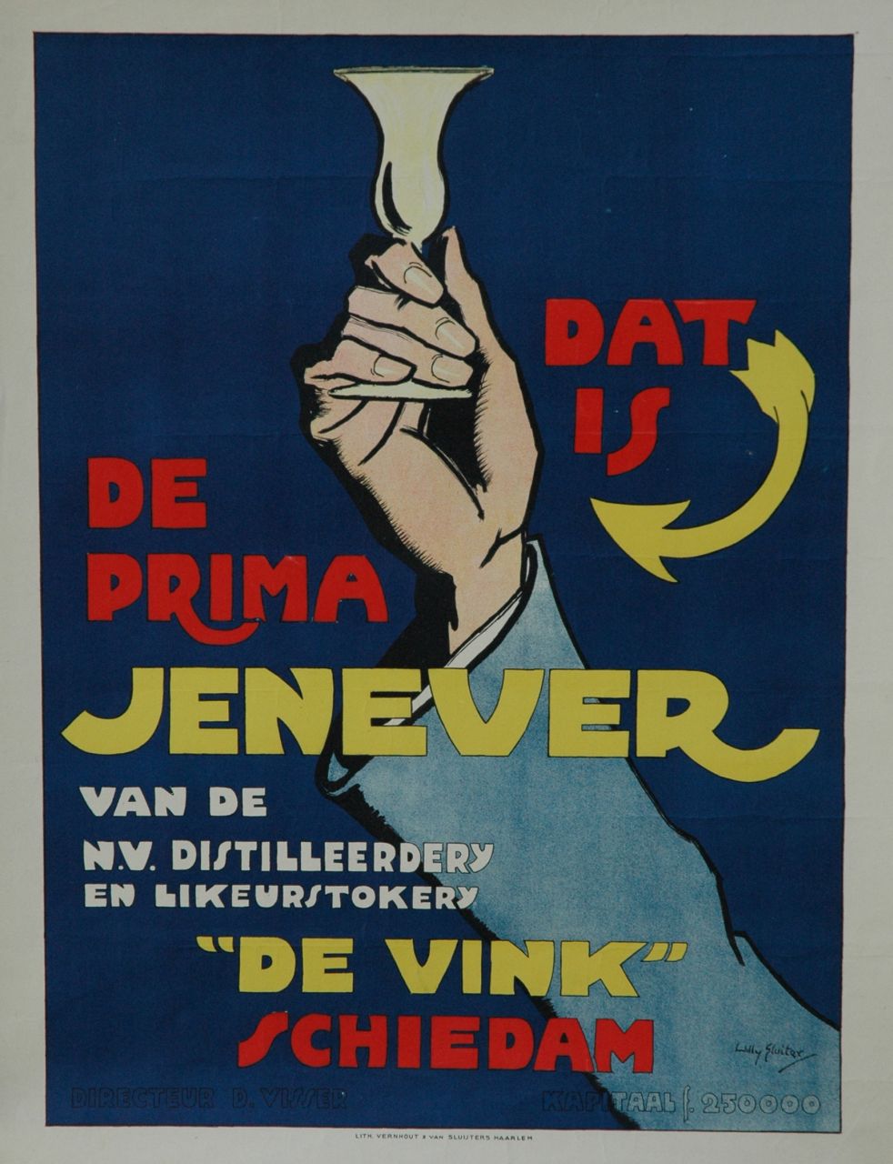 Willy Sluiter kunstwerk • grafiek • voorheen te koop Poster 'Dat is de prima Jenever van 'De Vink' Schiedam'