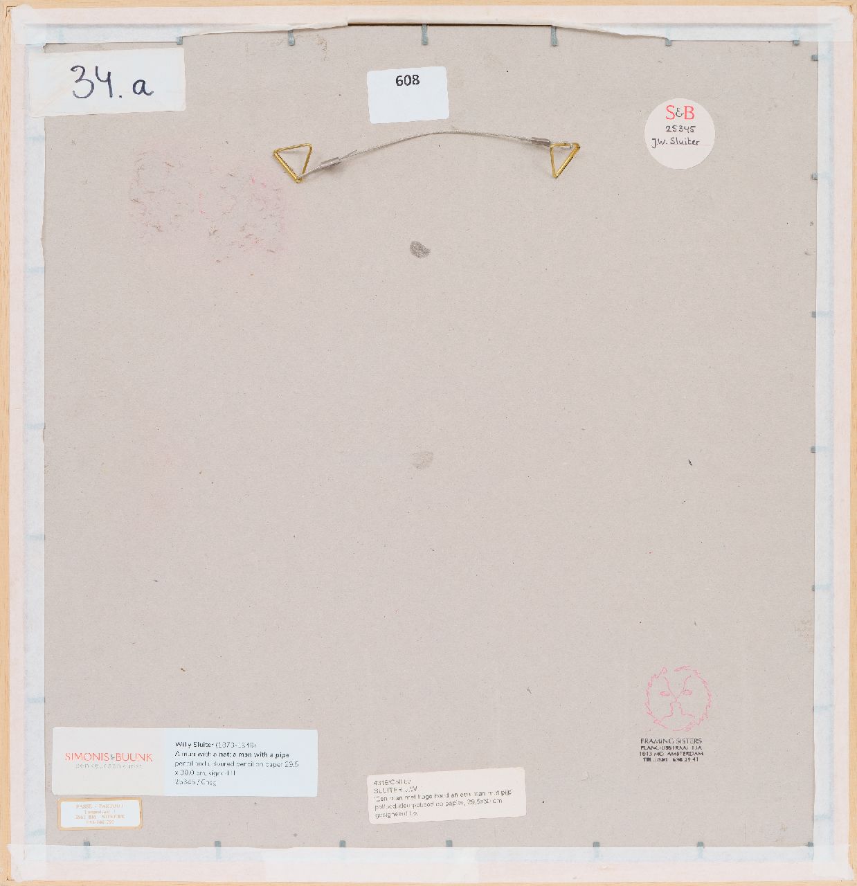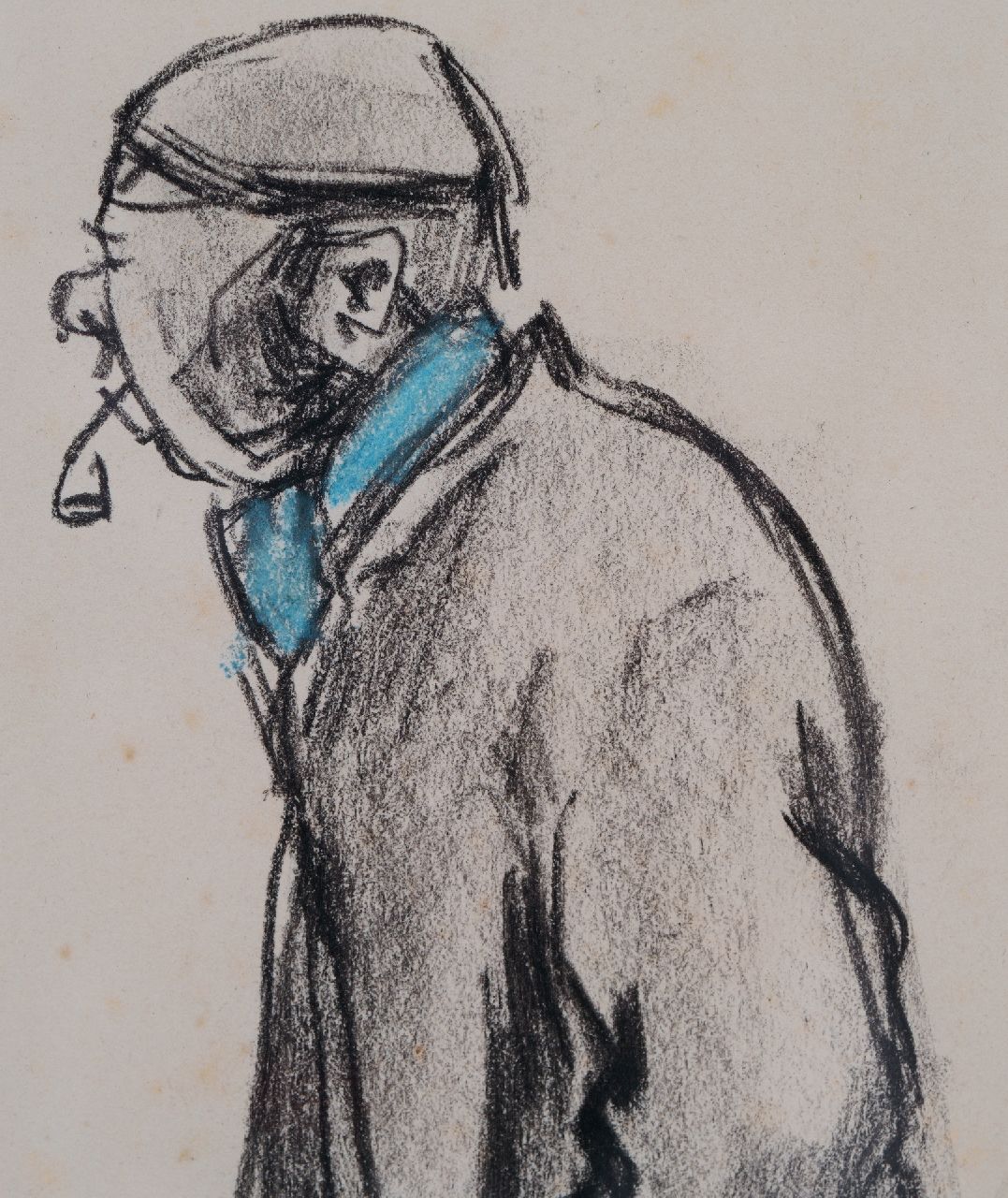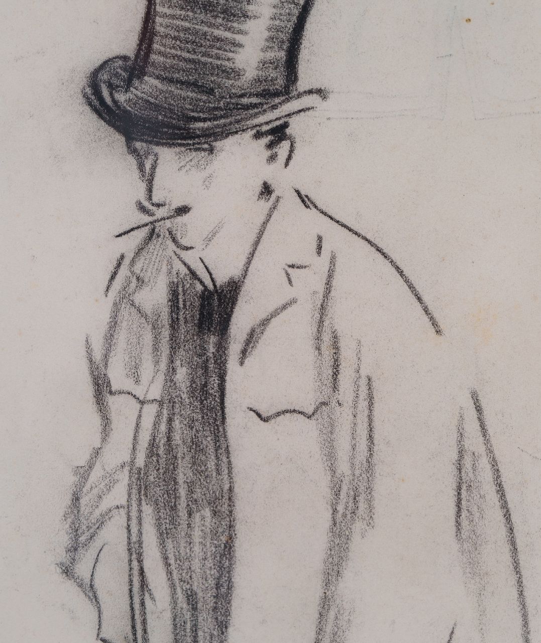 Willy Sluiter kunstwerk • aquarel • tekening • te koop Een heer met hoge hoed; een werkman met pijp