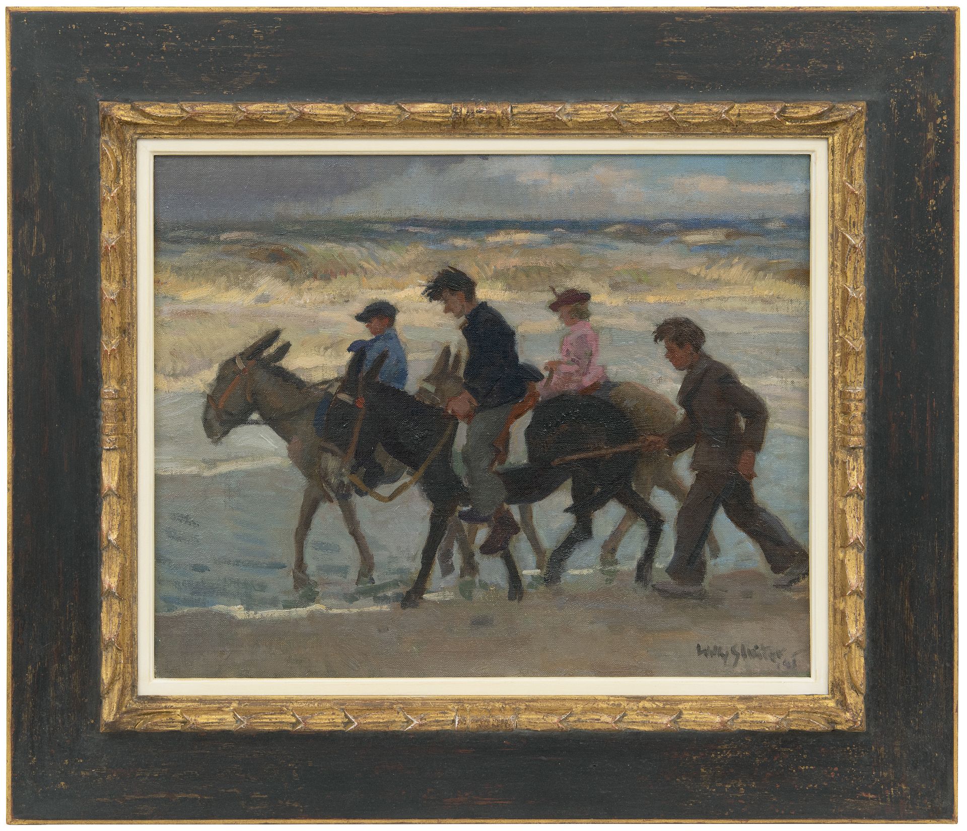 Willy Sluiter kunstwerk • schilderij • voorheen te koop Ezelrit op het strand