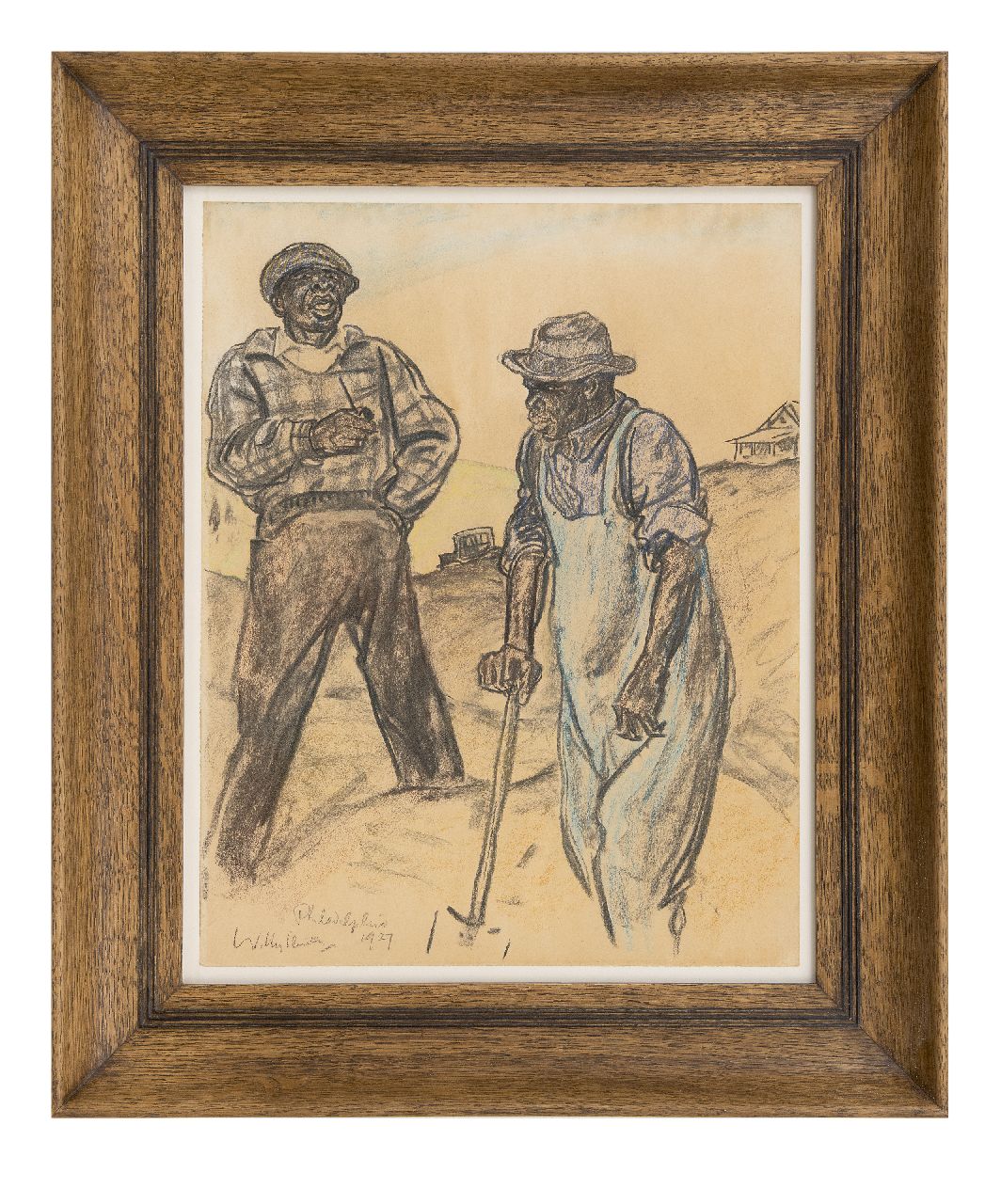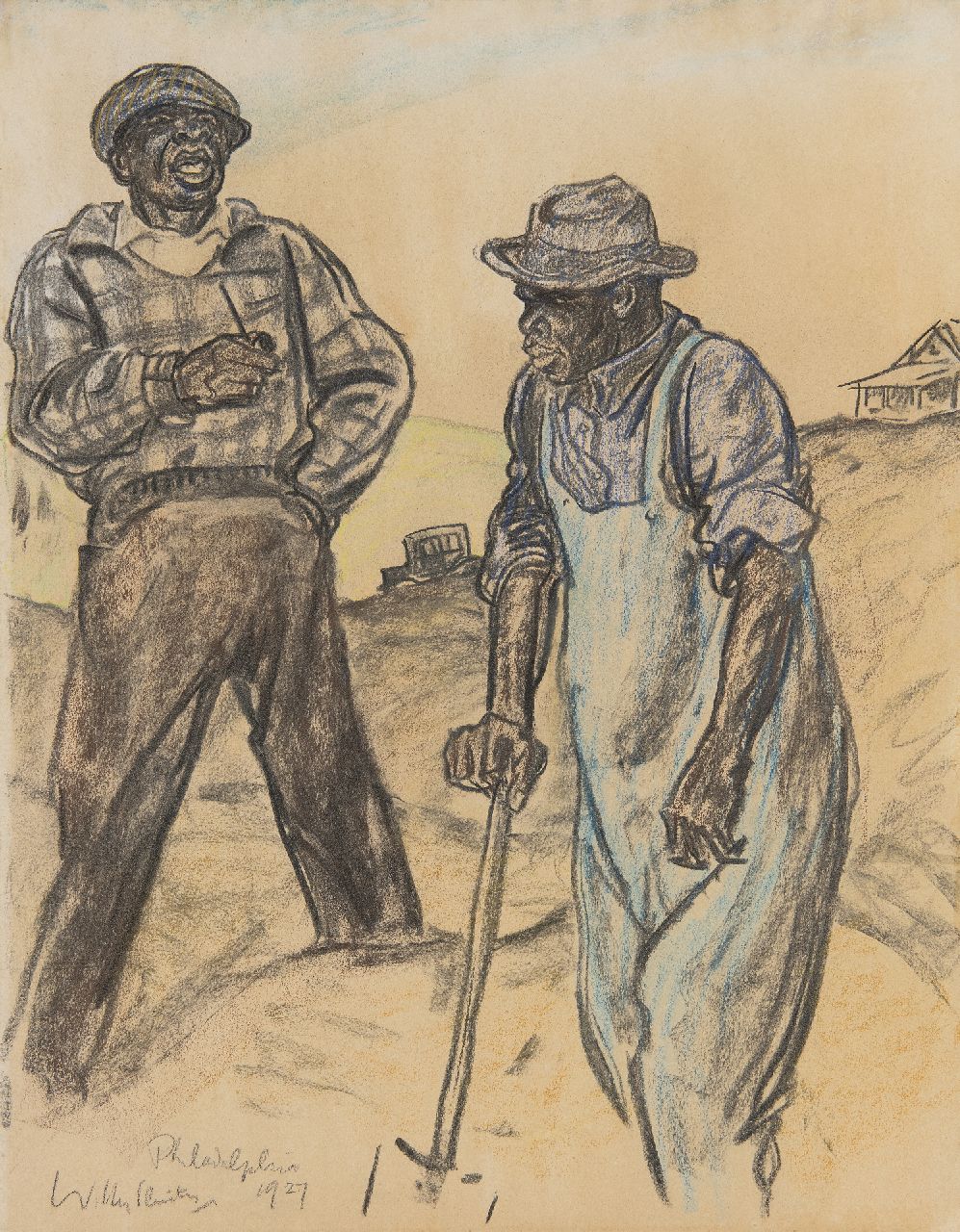 Willy Sluiter kunstwerk • aquarel • tekening • voorheen te koop Grondwerkers, Philadelphia