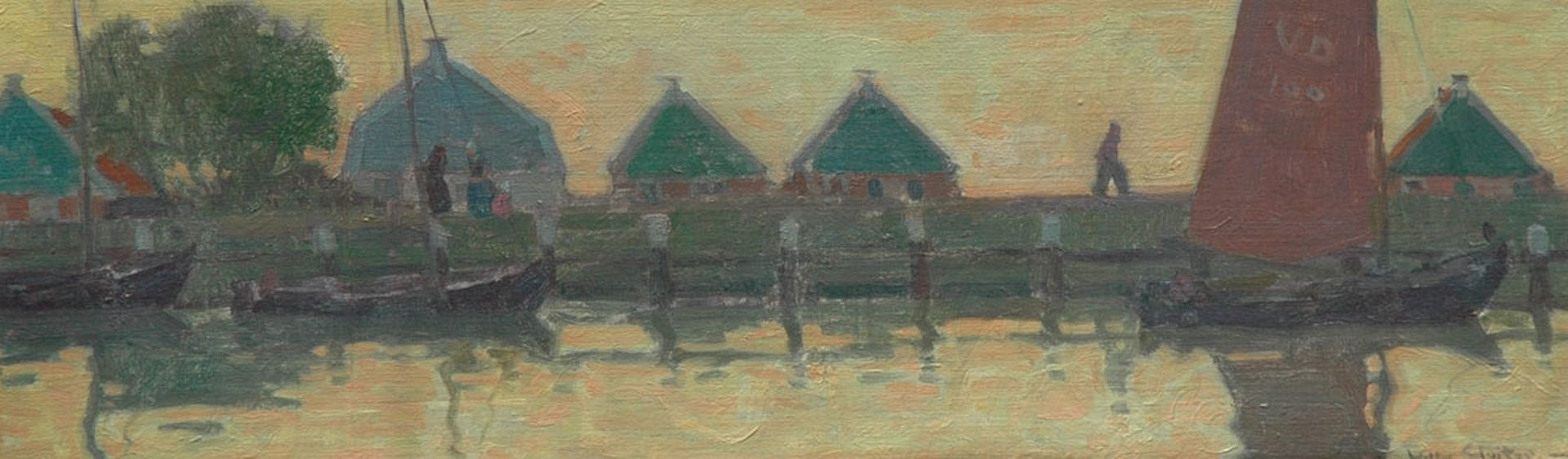 Willy Sluiter kunstwerk • schilderij • voorheen te koop Huisjes aan de dijk in Volendam