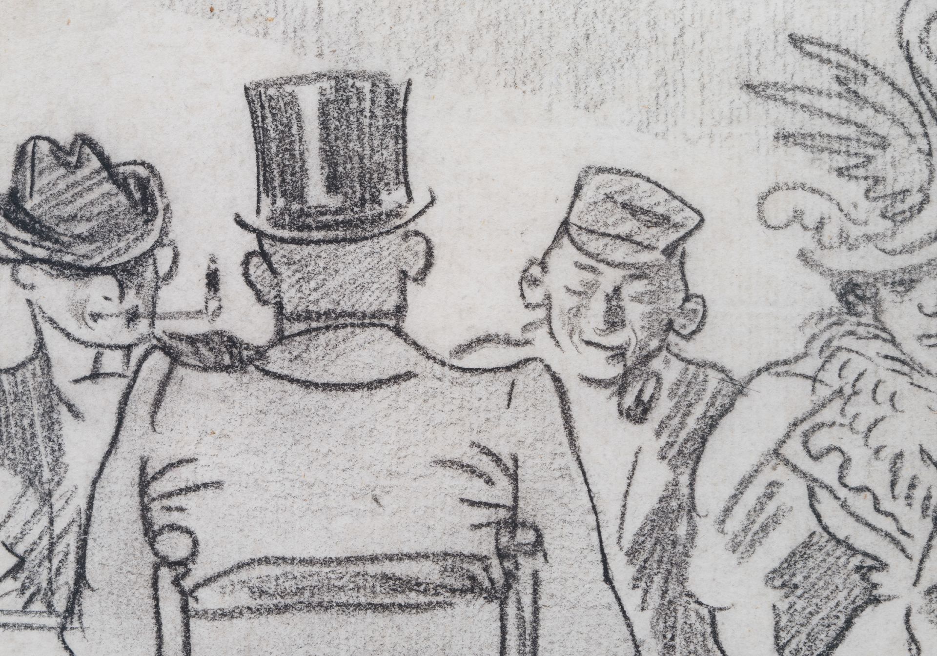 Willy Sluiter | Een heer met hoge hoed; een werkman met pijp, potlood en kleurpotlood op papier, 29,5 x 30,0 cm, gesigneerd l.o.