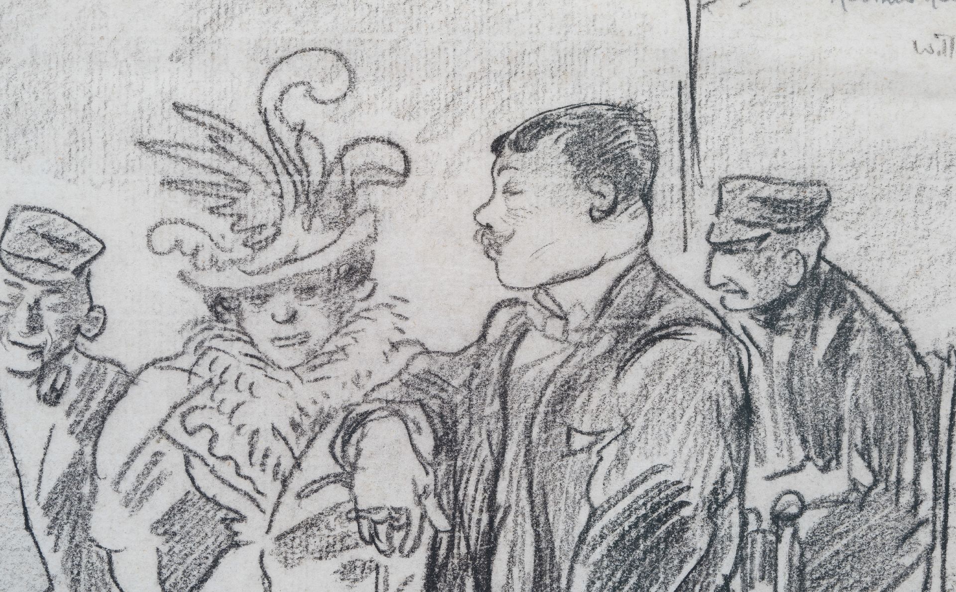 Willy Sluiter | Jan Toorop schetsend op het strand van Katwijk aan Zee, zwart krijt op papier, 32,6 x 27,0 cm, gesigneerd r.o. en te dateren ca. 1898