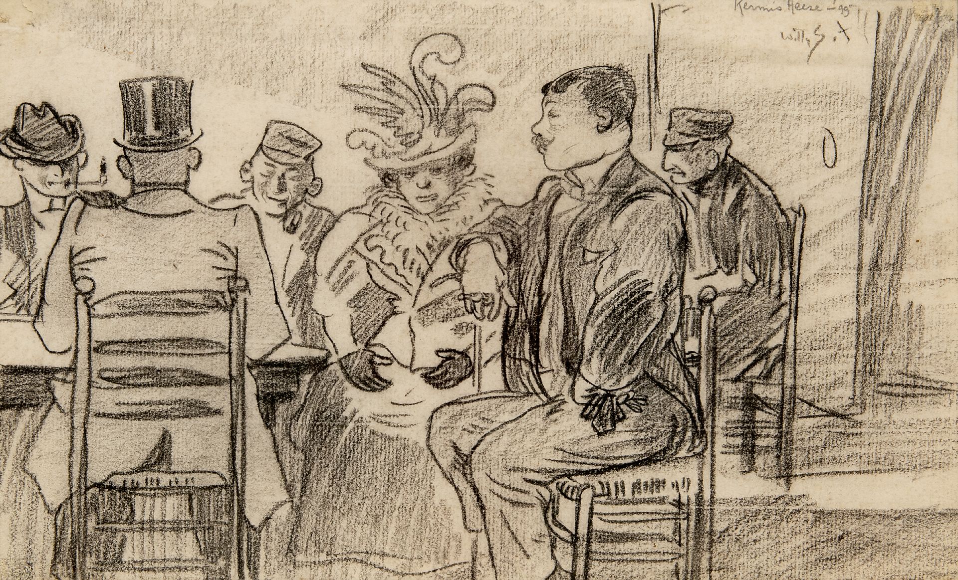 Willy Sluiter kunstwerk • aquarel • tekening • te koop Kermis, Heeze