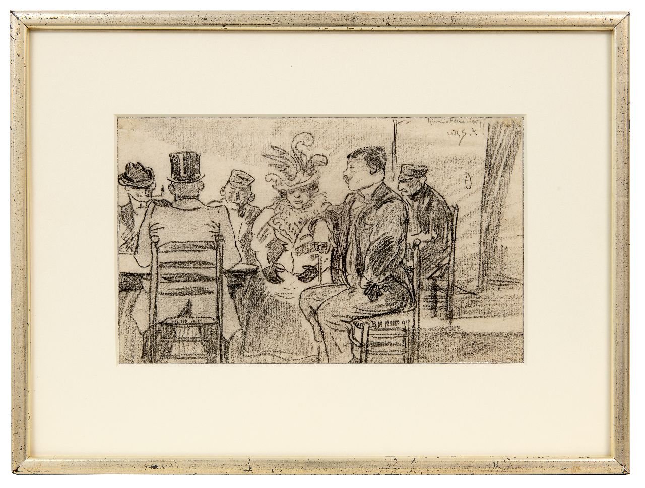 zwart krijt en aquarel op papier 20,0 x 32,1 cm, gesigneerd rechtsboven en gedateerd '99