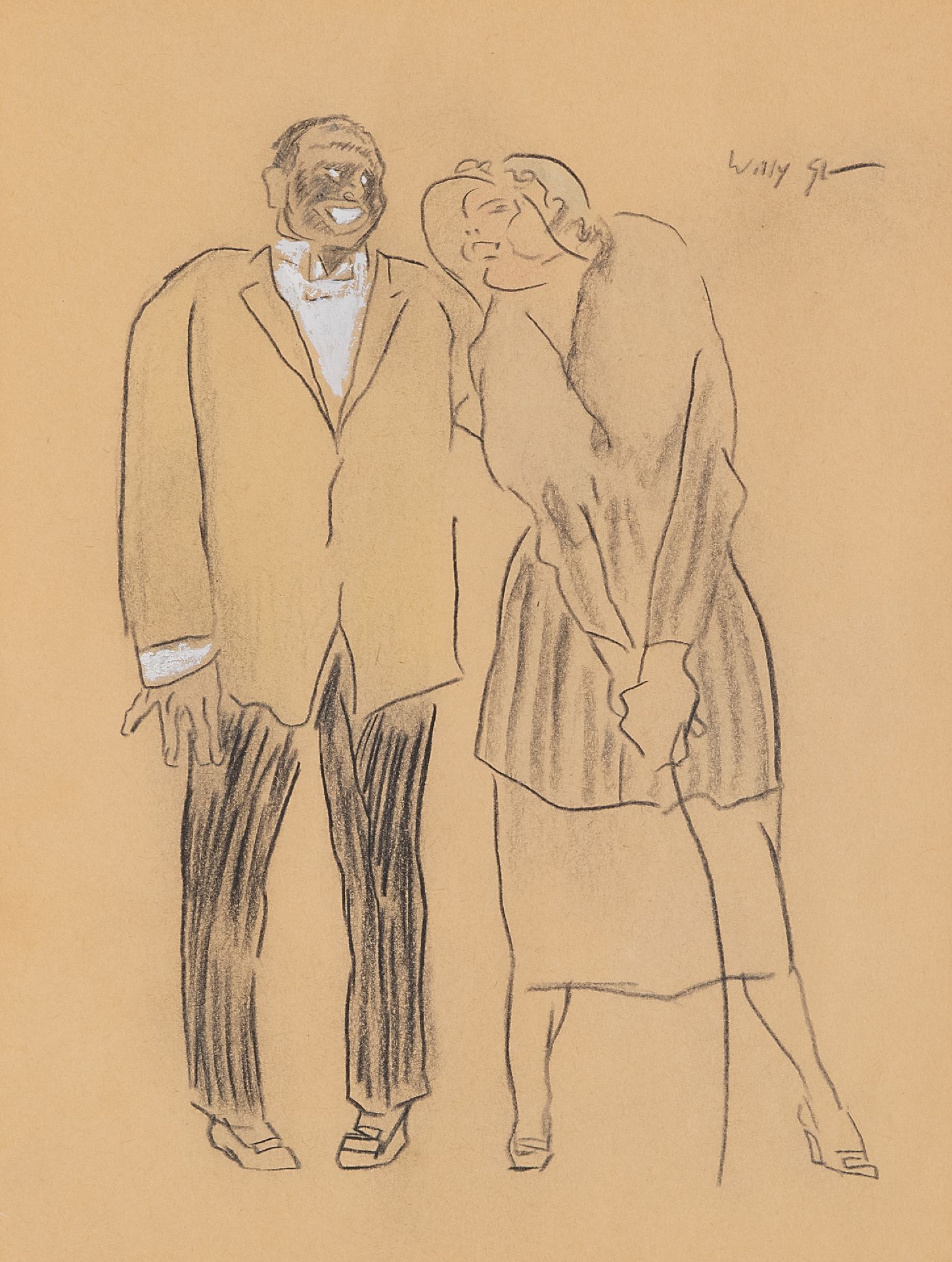 Sluiter J.W.  | Jan Willem 'Willy' Sluiter, Lachend paar, krijt en gouache op papier 24,7 x 18,1 cm, gesigneerd rechtsboven