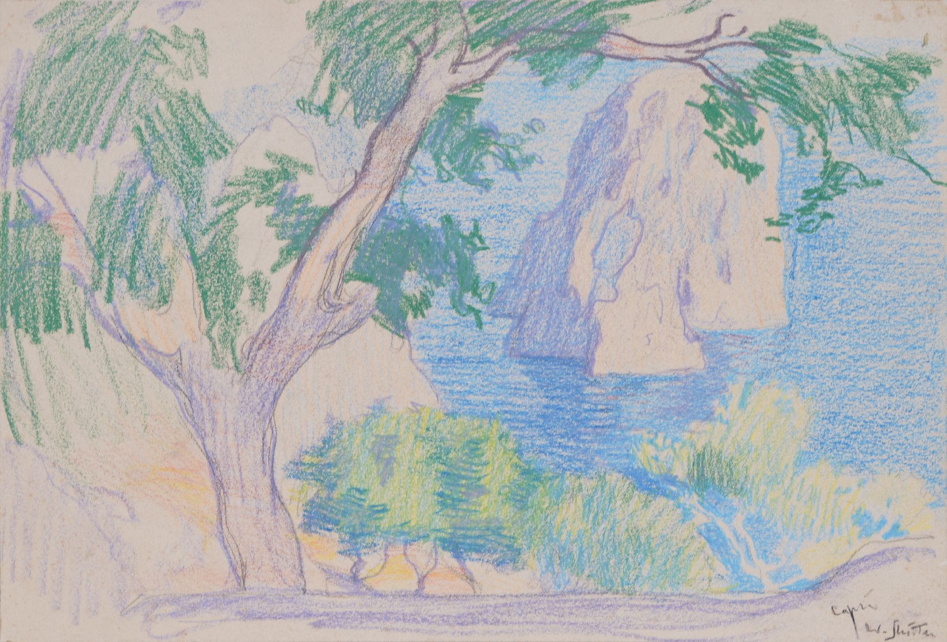 Willy Sluiter kunstwerk • aquarel • tekening • voorheen te koop Landschap op Capri