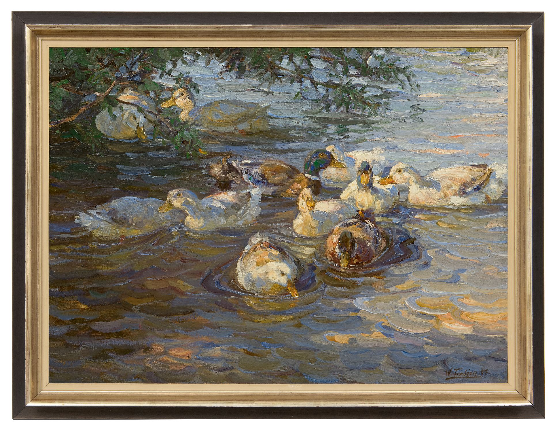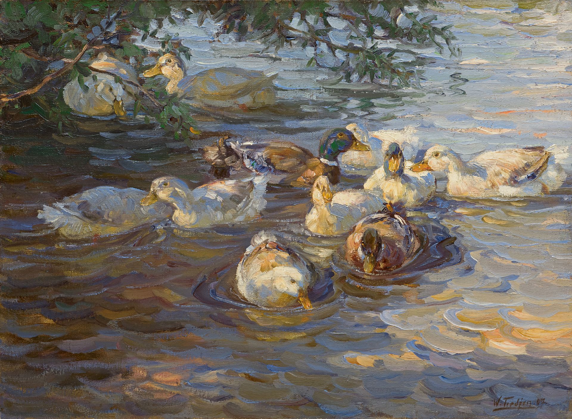 Willy Tiedjen kunstwerk • schilderij • te koop Eenden in een vijver