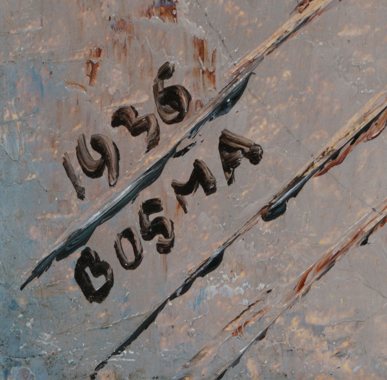 Wim Bosma voelde zich in de jaren 30 als schilder sterk aangetrokken tot de ‘wonderen' van de moderne techniek. Hij schilderde en aquarelleerde dan ook graag zaken als spoorwegviaducten, treinen, boten en vliegmachines in een nieuw-zakelijke, realistische stijl. Daarnaast laten zijn schilderijen invloed zien van het gematigde kubisme van André Lhote, waarbij de voorstelling bestaat uit lijnen en kleurvlakken die de vlakheid van het doek als het ware benadrukken. Na 1945 deden naast technische onderwerpen ook andere motieven hun intrede in zijn werk.