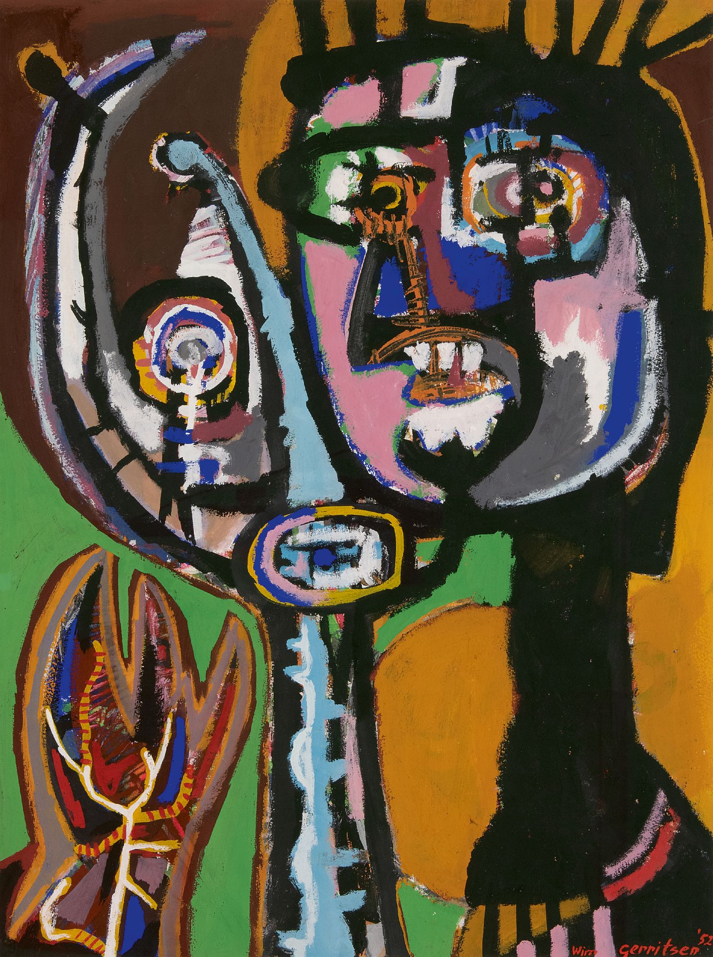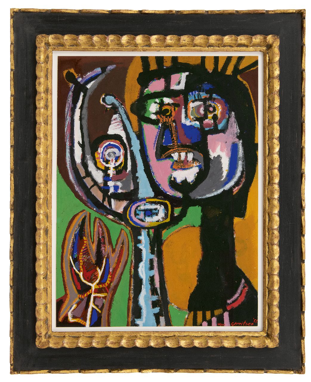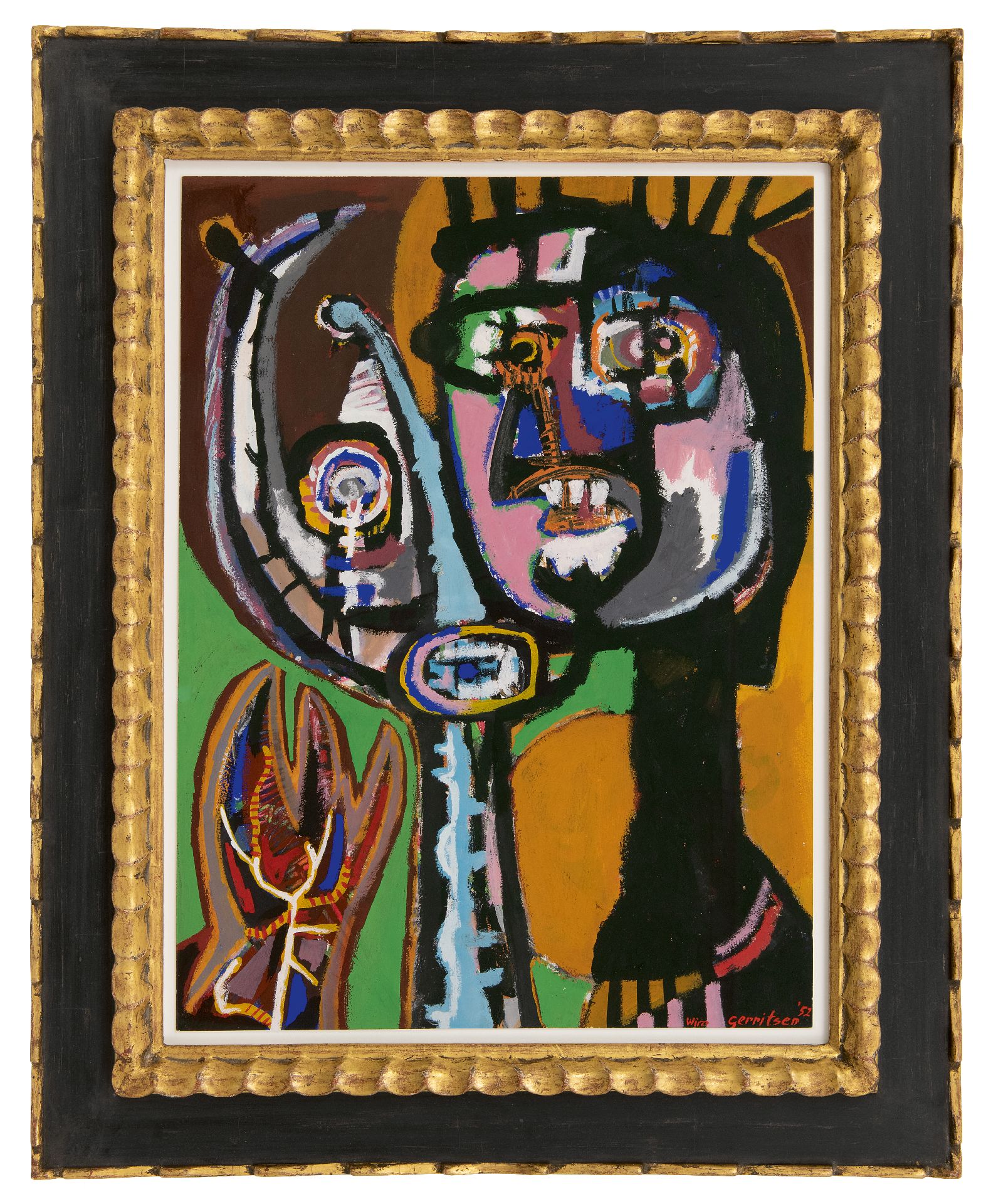 De Arnhemse schilder Wim Gerritsen behoort tot de generatie na-oorlogse kunstenaars die zich in expressieve vormen en kleuren bezighielden met de weergave van het onderbewuste. Zijn abstracte gouaches en tekeningen - soms vol wilde beweging - worden wel getypeerd als Destruction Art (absurdisme). Evenals vele andere schilders werd Gerritsen in de jaren vijftig beinvloed door de vormentaal (fantastische vogel-mens-kinderfiguren) van de Cobra-schilders. Van daaruit ontwikkelde hij zijn eigen beeldtaal. Behalve olieverfschilderijen en gouaches maakte Wim Gerritsen ook een aantal muurschilderingen.