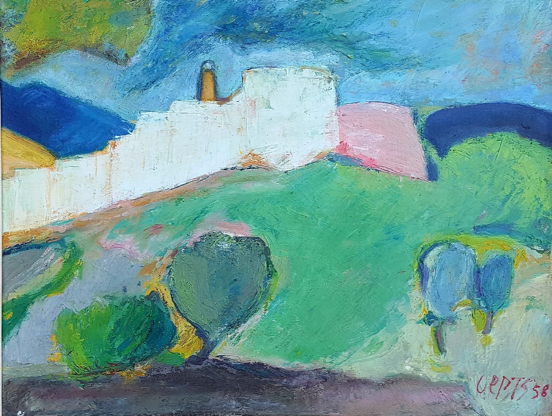 olieverf op doek 35,3 x 45,5 cm, gesigneerd rechtsonder en gedateerd '58