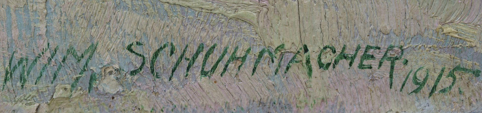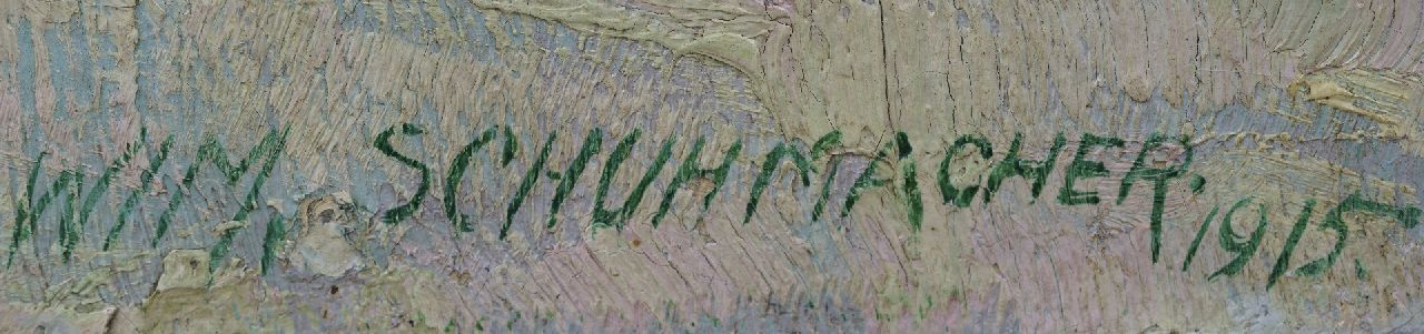 Wim Schuhmacher kreeg een opleiding als huisschilder en was van 1911 tot 1913 assistent van de binnenhuiskunstenaar C.A. Lion Cachet in Amsterdam. Het vrije schilderen maakte hij zich na 1913 eigen door avondlessen en zelfstudie. Naar eigen zeggen werd hij de eerste jaren daarna het meest beïnvloed door het werk van Breitner, Toorop en Van Gogh. Maar als jong schilder in Amsterdam had hij ook volop de gelegenheid om kennis te maken met het luminisme van Leo Gestel en Jan Sluijters dat, evenals het werk van de neo-impressionisten, de Parijse kubisten en de Duitse expressionisten, te zien was op de tentoonstellingen van De Moderne Kunstkring en De Onafhankelijken in de hoofdstad.
