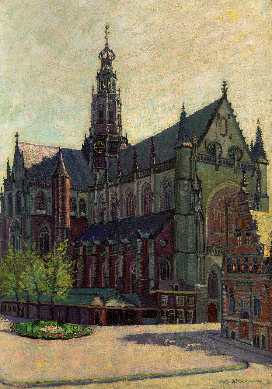 Wim Schuhmacher kunstwerk • schilderij • te koop De Grote of St. Bavokerk in Haarlem