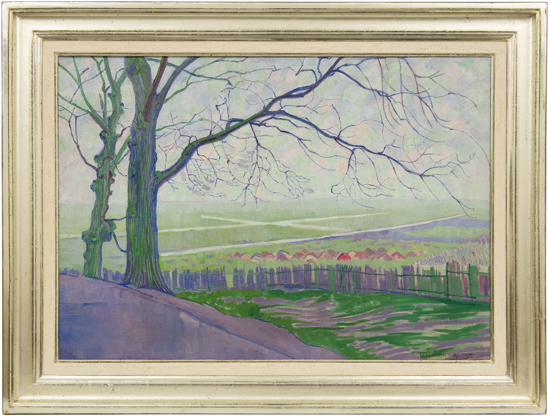 olieverf op doek 56,5 x 80,7 cm, gesigneerd rechtsonder en gedateerd 1915