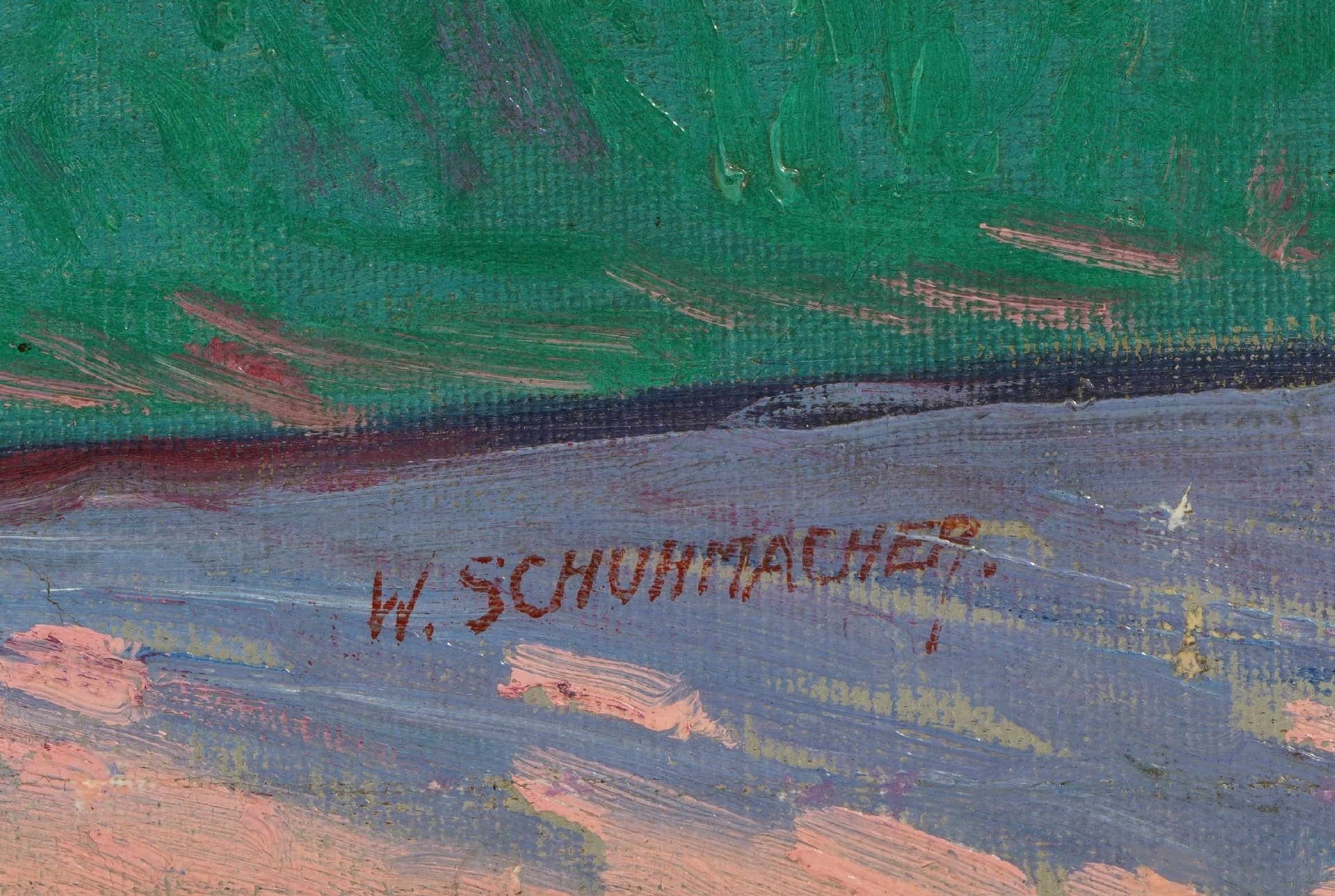 Wim Schuhmacher kreeg een opleiding als huisschilder en was van 1911 tot 1913 assistent van de binnenhuiskunstenaar C.A. Lion Cachet in Amsterdam. Het vrije schilderen maakte hij zich na 1913 eigen door avondlessen en zelfstudie. Naar eigen zeggen werd hij de eerste jaren daarna het meest beïnvloed door het werk van Breitner, Toorop en Van Gogh. Maar als jong schilder in Amsterdam had hij ook volop de gelegenheid om kennis te maken met het luminisme van Leo Gestel en Jan Sluijters dat, evenals het werk van de neo-impressionisten, de Parijse kubisten en de Duitse expressionisten, te zien was op de tentoonstellingen van De Moderne Kunstkring en De Onafhankelijken in de hoofdstad.