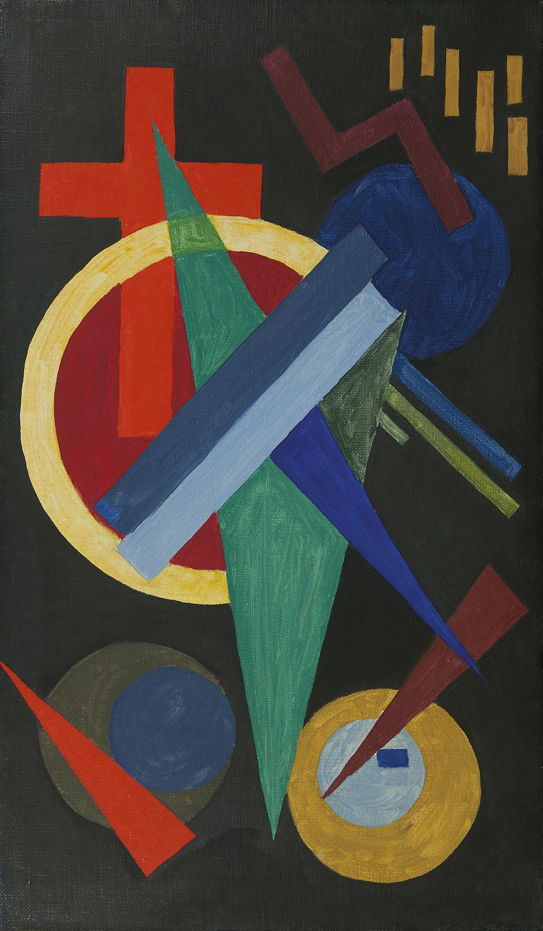 Literatuur: Flip Bool, Ad Petersen, 'Het vroege werk van Wobbe Alkema', Den Haag 1978, pag. 10, cat.nr. S23 (met afb., als 'Kompositie met zwart fond'); H.W. van Os, 'Wobbe Alkema en de Groninger schilderkunst', Groningen 1978, pag. 53 (met afb., als 'Compositie met Rood Kruis'); tent.cat. Zwolle, Stedelijk Museum, 'Muziek! Vier eeuwen muzikale kunst', 2015, afb. in kleur pag. 43.