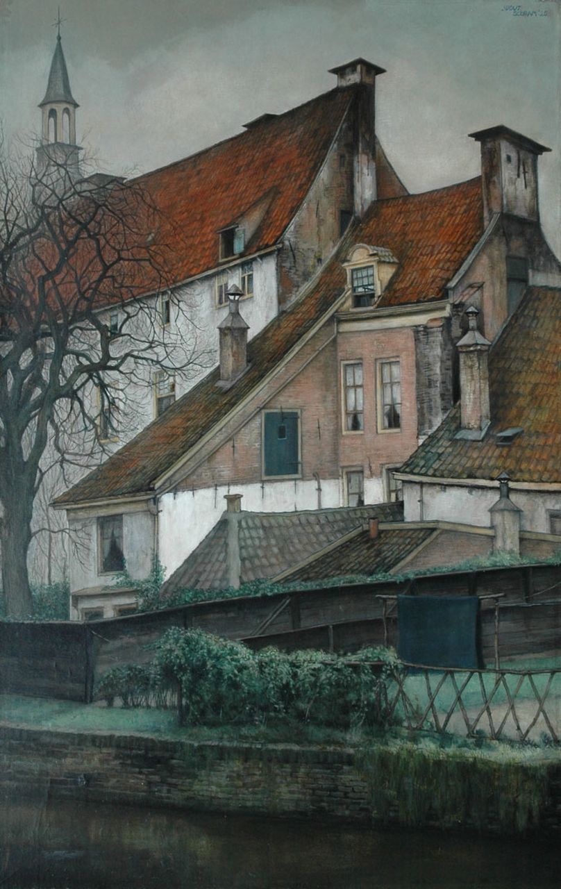 Wout Schram kunstwerk • schilderij • voorheen te koop Gezicht op Amersfoort vanaf de Zuidsingel