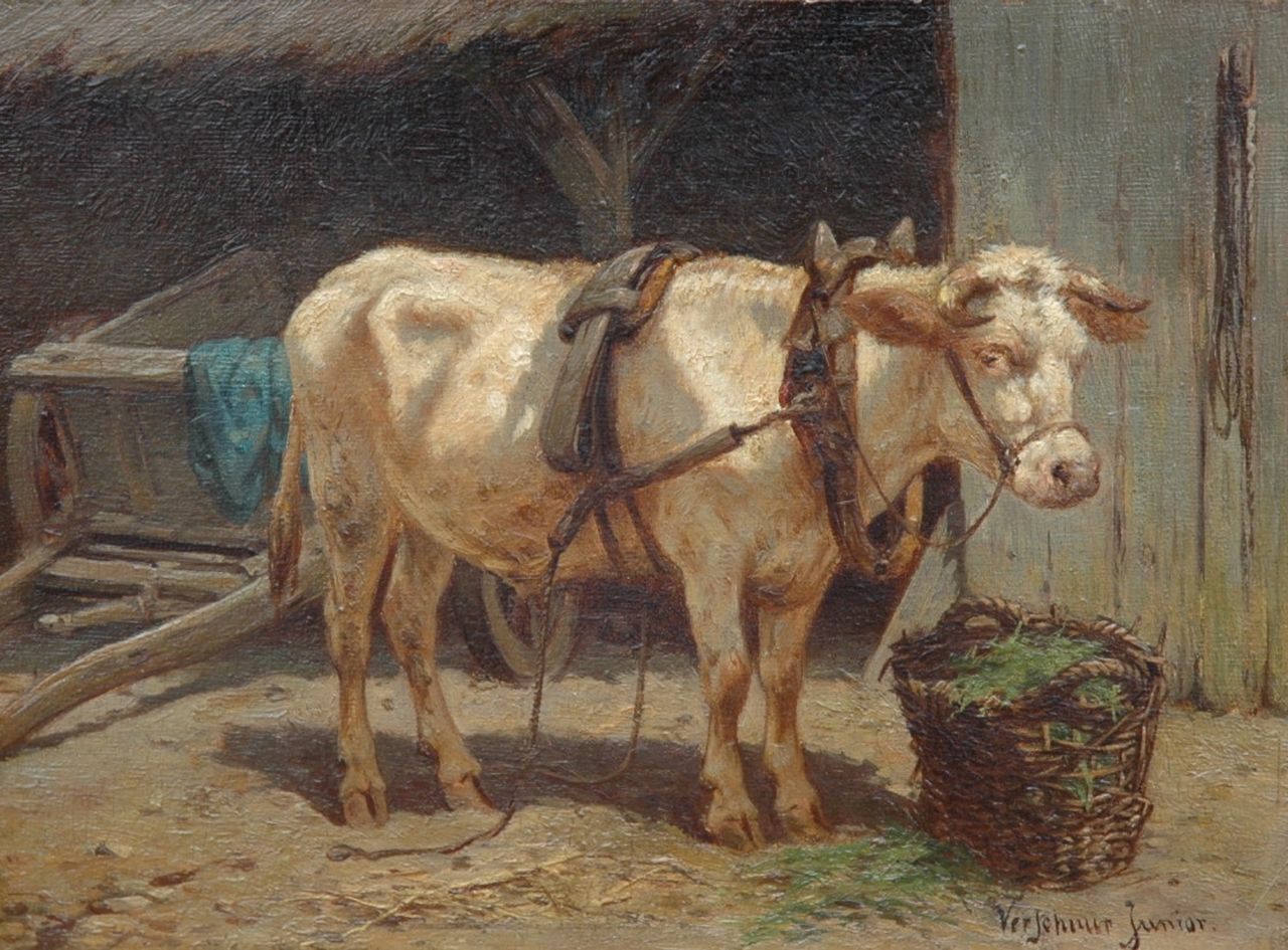 Wouter Verschuur jr. kunstwerk • schilderij • voorheen te koop Voedertijd aan het eind van de dag