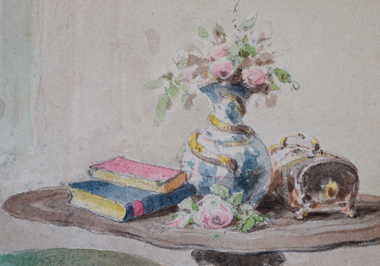 aquarel op papier 14,2 x 20,7 cm, gesigneerd rechtsonder