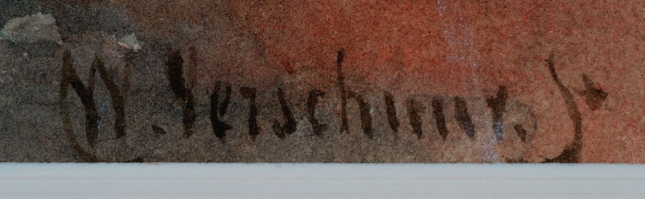 Wouterus Verschuur was in zijn tijd al een beroemd paardenschilder. Van zijn leermeester, de veeschilder P.G. van Os, leerde hij hun bouw en bewegingen tot in de perfectie vast te leggen. Als rechtgeaard romanticus had hij daarnaast belangstelling voor hun karakter. Zo schilderde hij sterke boerenpaarden op stal, ranke rijpaarden tijdens een middagrit en energieke tuigpaarden. Verschuur was ook een knap hondenschilder. Deze dieren komen op de meeste van zijn schilderijen dan ook voor. Tussen 1858 en 1868 woonde de schilder in Haarlem, waar hij les gaf aan Anton Mauve. Ook was hij leermeester van zijn zoon Wouterus jr., die zich eveneens specialiseerde in het schilderen van paarden.