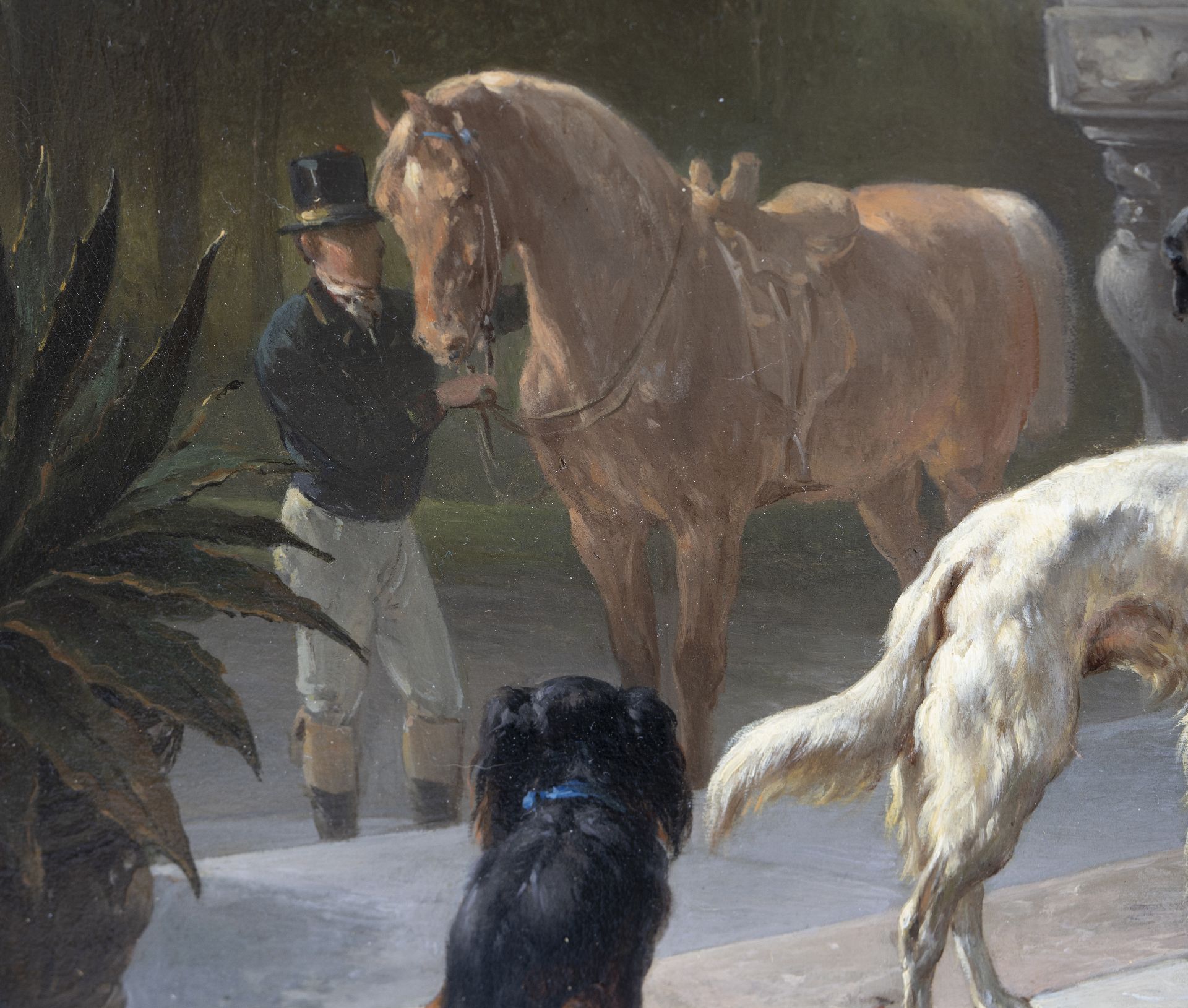 Wouterus Verschuur was in zijn tijd al een beroemd paardenschilder. Van zijn leermeester, de veeschilder P.G. van Os, leerde hij hun bouw en bewegingen tot in de perfectie vast te leggen. Als rechtgeaard romanticus had hij daarnaast belangstelling voor hun karakter. Zo schilderde hij sterke boerenpaarden op stal, ranke rijpaarden tijdens een middagrit en energieke tuigpaarden. Verschuur was ook een knap hondenschilder. Deze dieren komen op de meeste van zijn schilderijen dan ook voor. Tussen 1858 en 1868 woonde de schilder in Haarlem, waar hij les gaf aan Anton Mauve. Ook was hij leermeester van zijn zoon Wouterus jr., die zich eveneens specialiseerde in het schilderen van paarden.