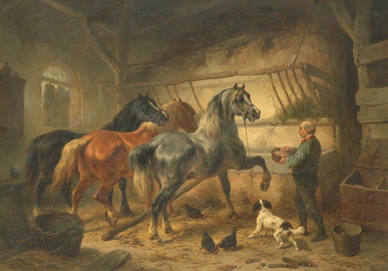 Wouterus Verschuur kunstwerk • schilderij • voorheen te koop Paarden in een stal