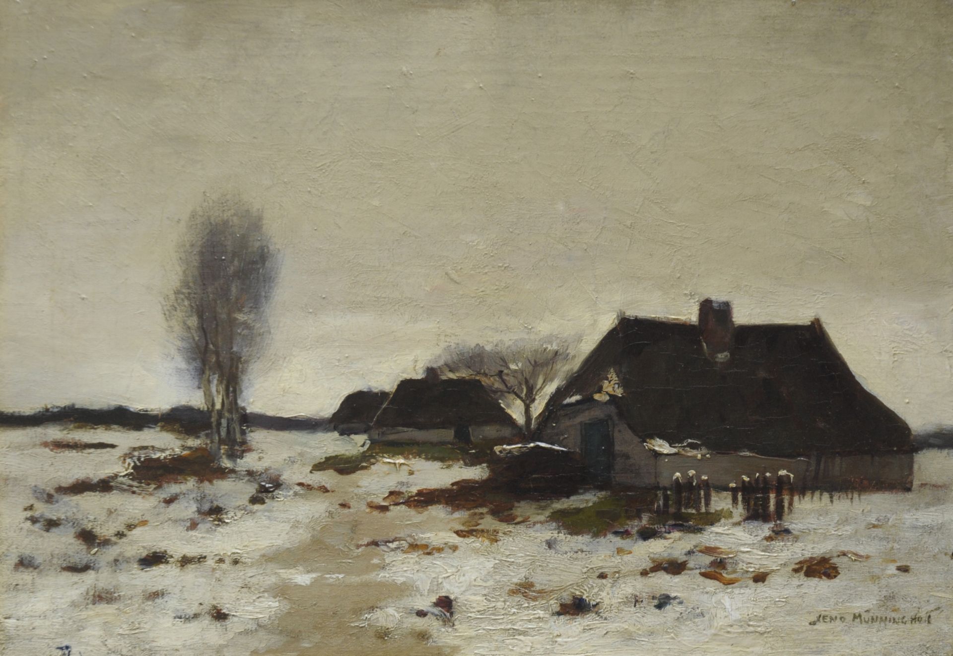 Xeno Münninghoff kunstwerk • schilderij • voorheen te koop Boerderijen in winters landschap