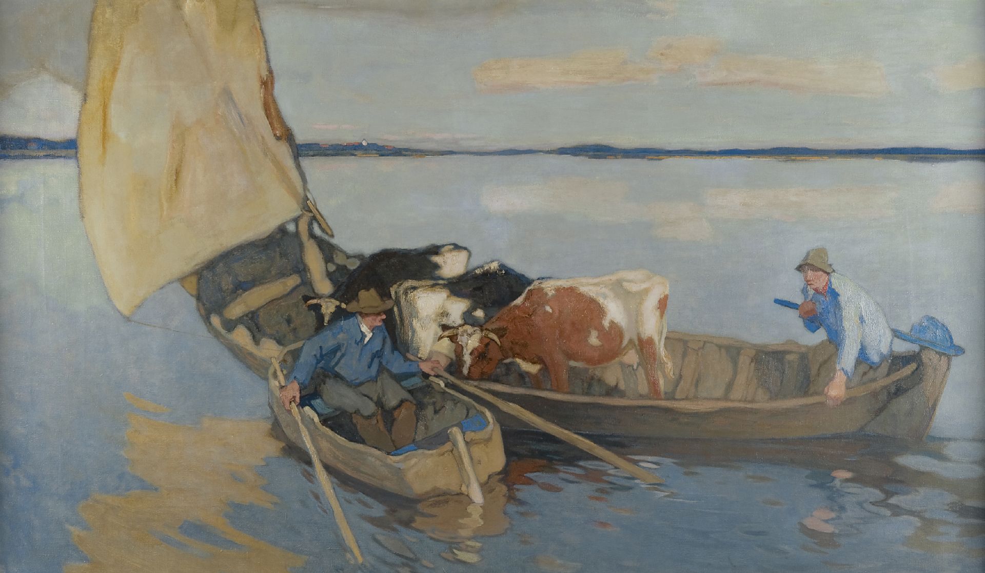 Ype Wenning kunstwerk • schilderij • voorheen te koop Boeren met koeien in een schuit