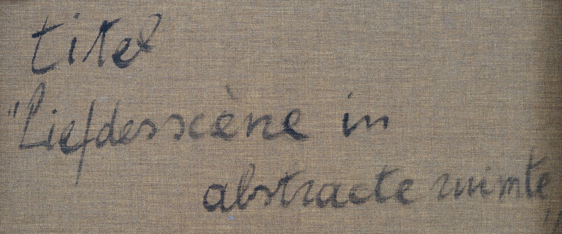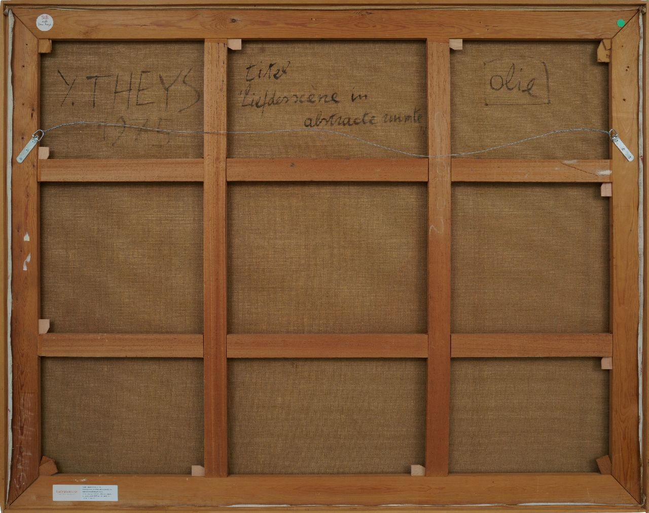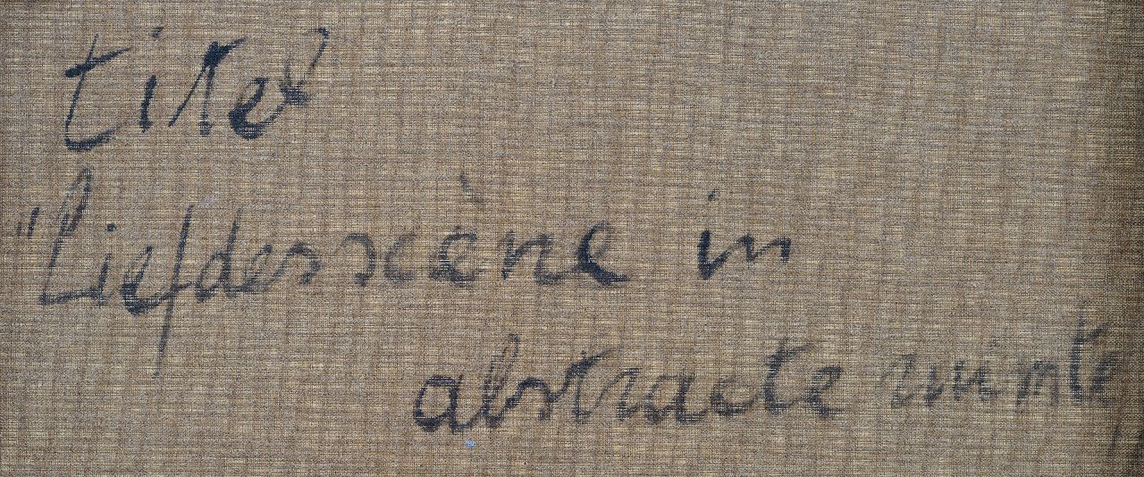 annotatie verso: 'Y. Theys 1975 'Liefdesscène in abstracte ruimte''