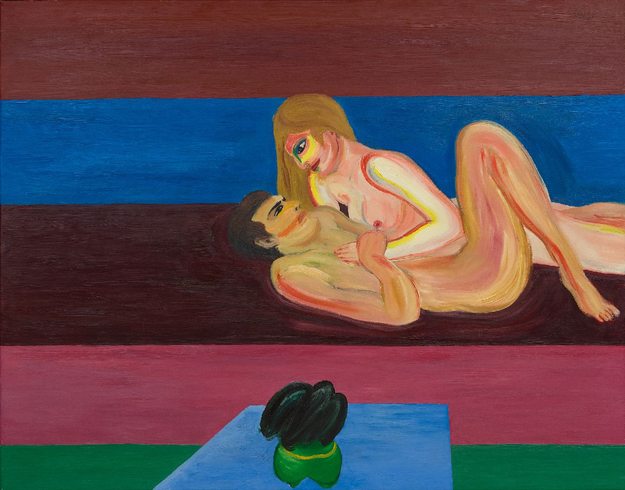 olieverf op doek 118,0 x 146,1 cm, gesigneerd rechtsboven en op spieraam gedateerd 1975