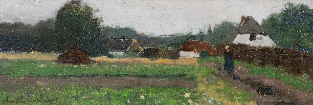 Achter de kerk (alleen samen met winters pendant, tezamen 32000), olieverf op paneel34,8 x 27,0 cm, gesigneerd r.o.